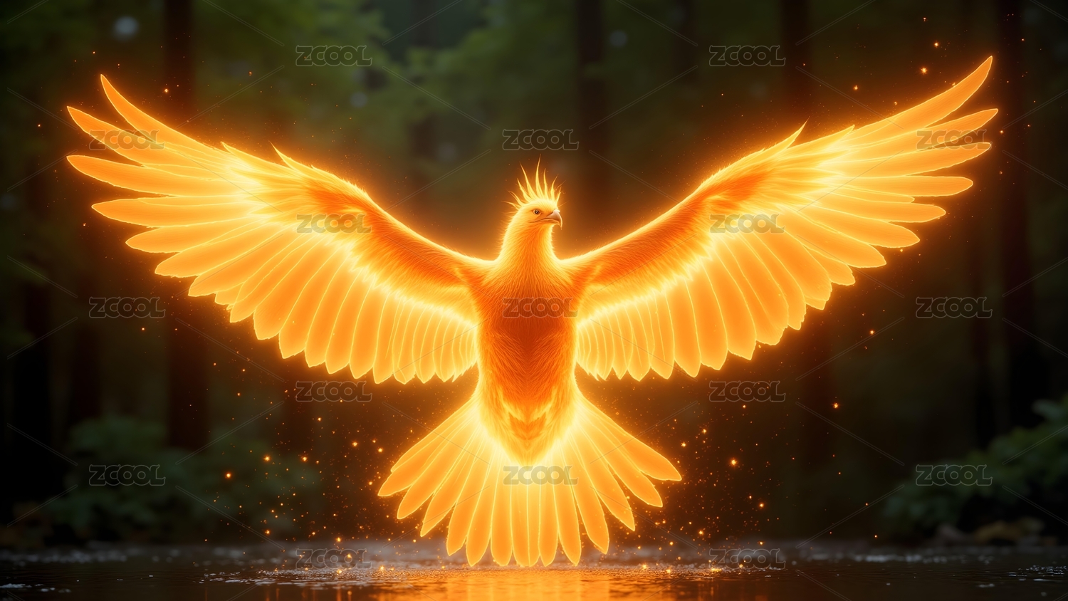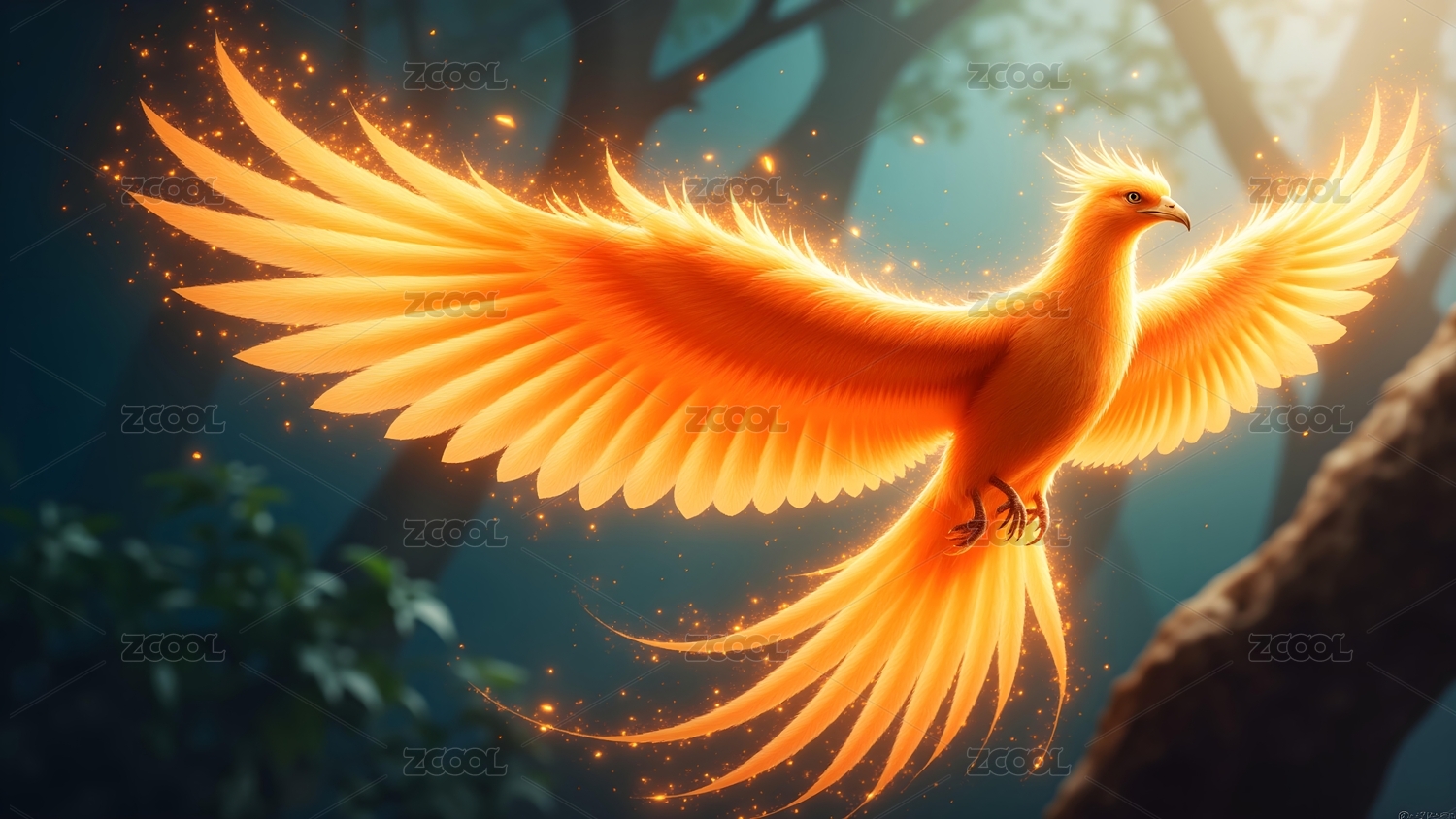 金色羽毛凤凰森林奇幻飞翔