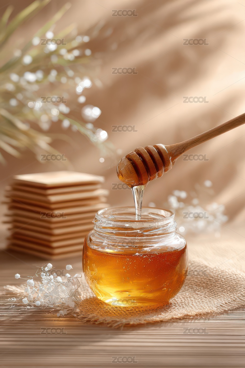蜂蜜缓缓流入玻璃罐的温馨场景