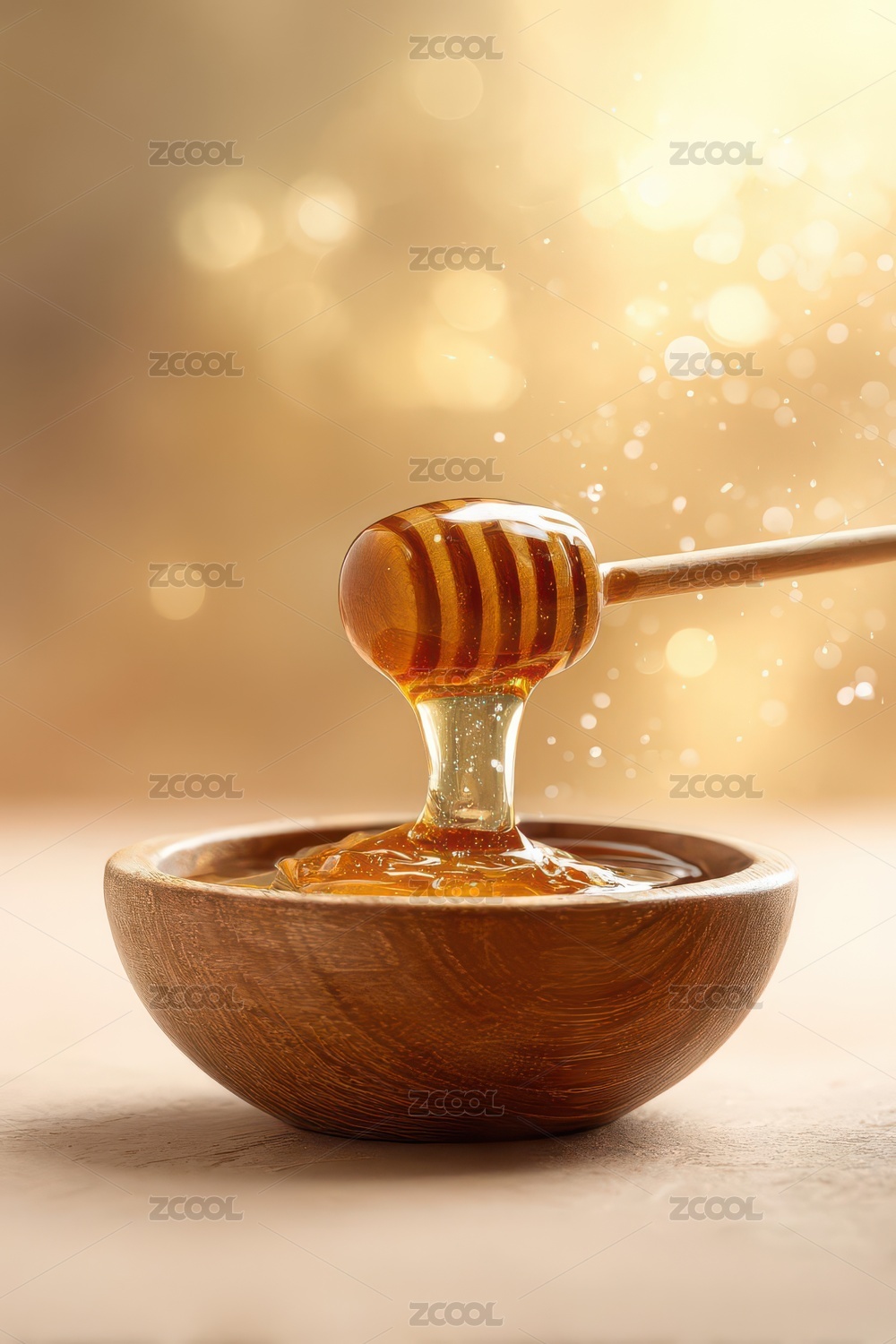 晶莹,流动,蜂蜜,滴落,光斑,透明,碗碟,甜品,勺子