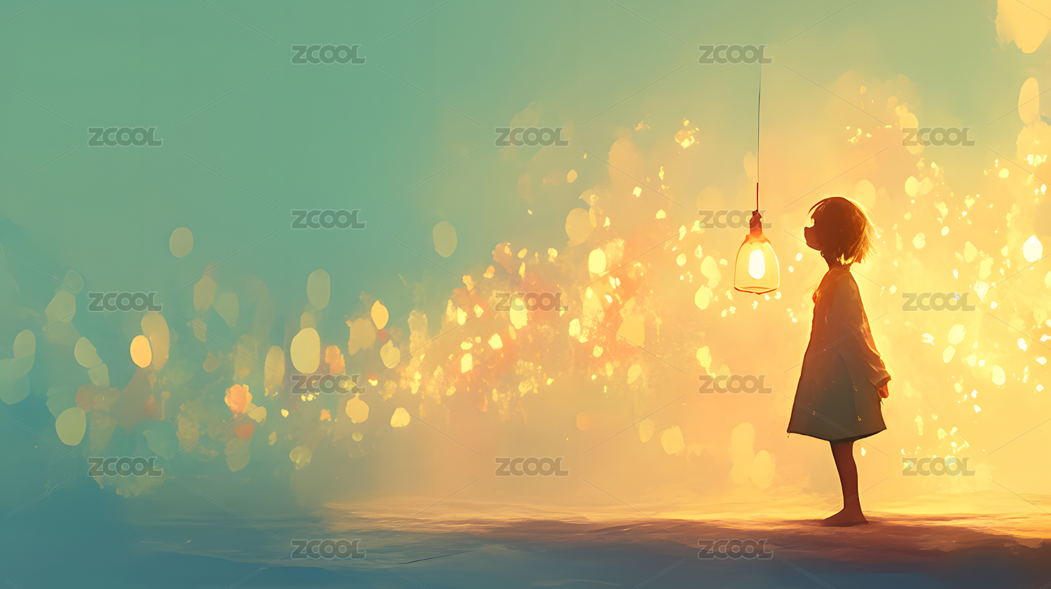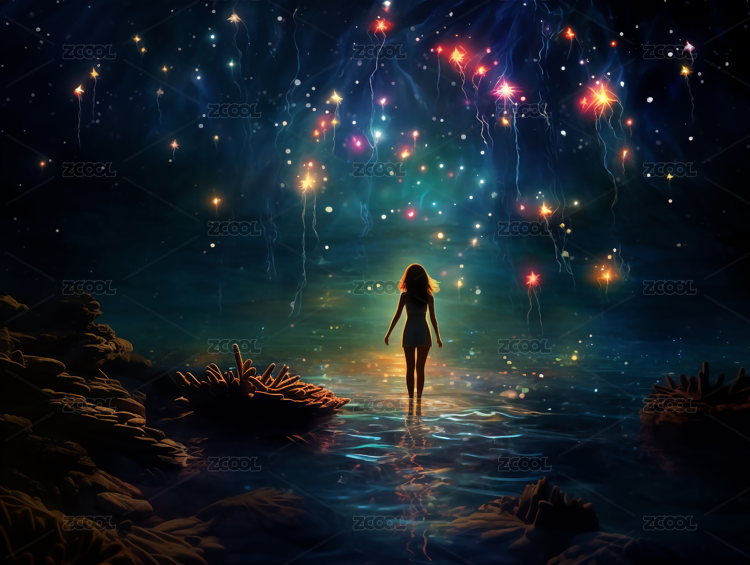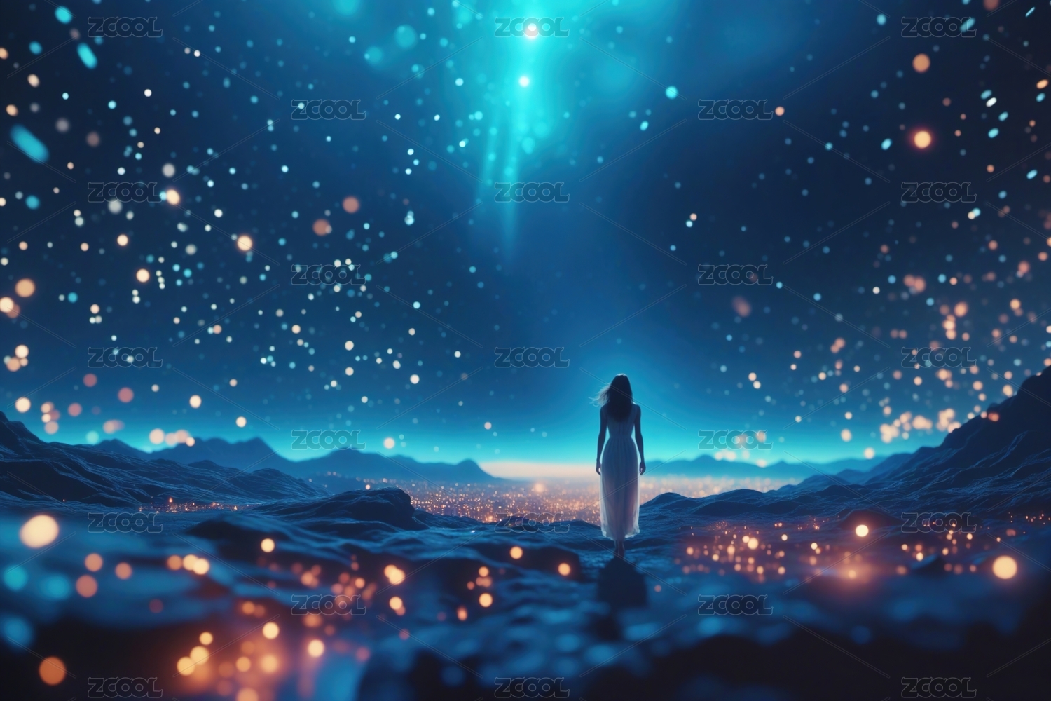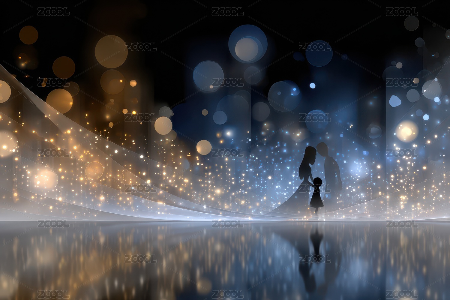 梦幻,星光,剪影,光斑,温馨,倒影,母子,夜空