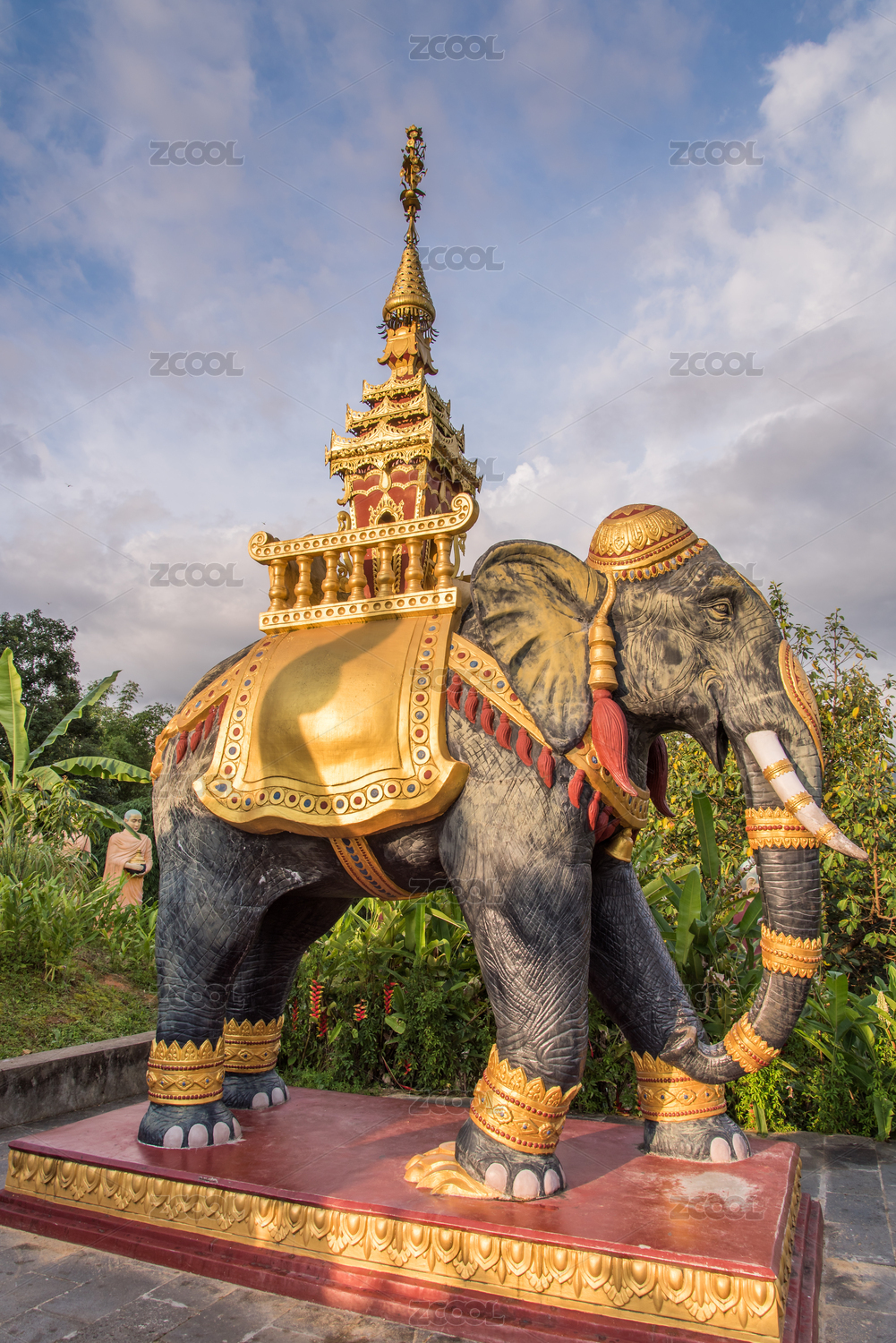 中国云南西双版纳景洪大金塔寺大象雕塑