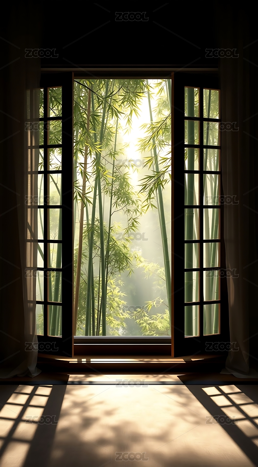 阳光透过竹叶洒进房间宁静而美丽