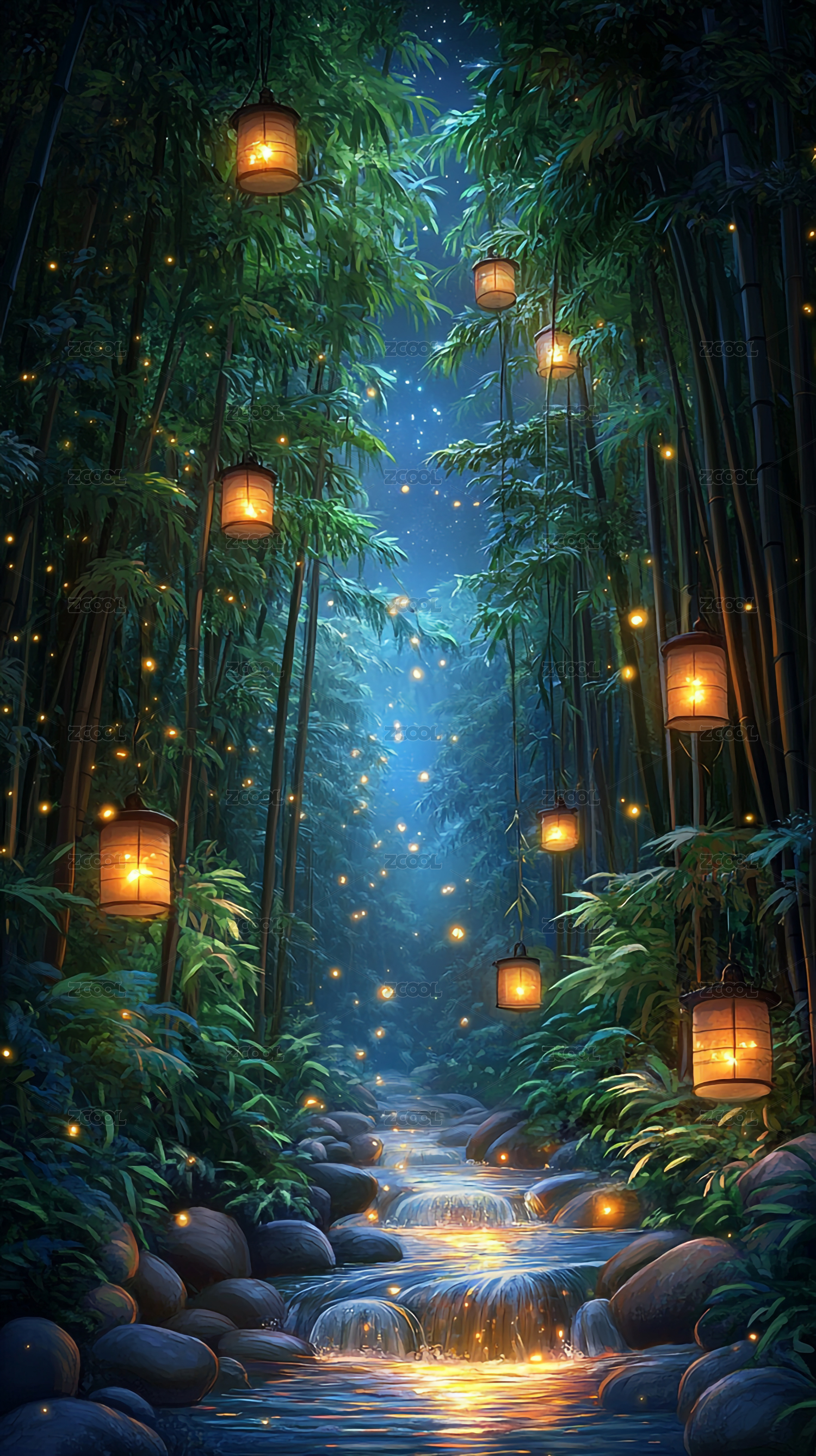翠竹幽径意境 溪流竹影禅意