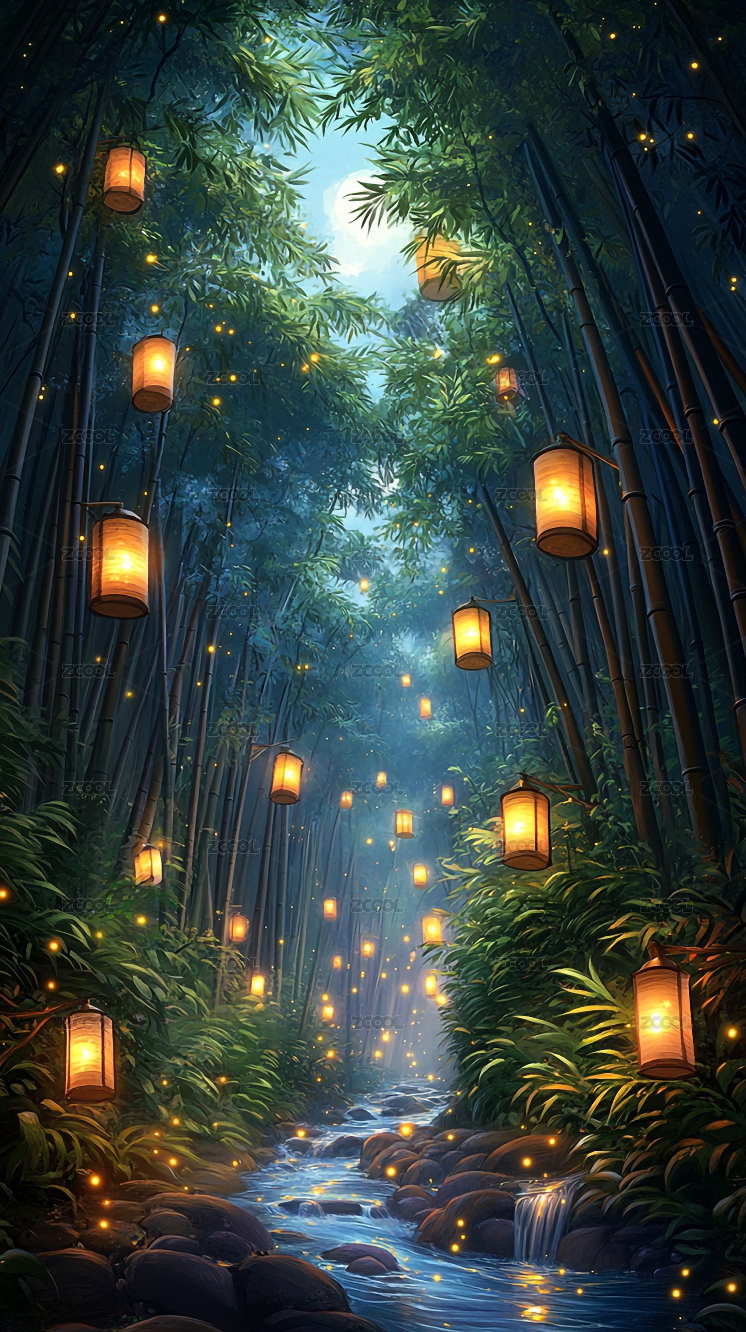 灯笼,竹林,小路,阳光,夜晚