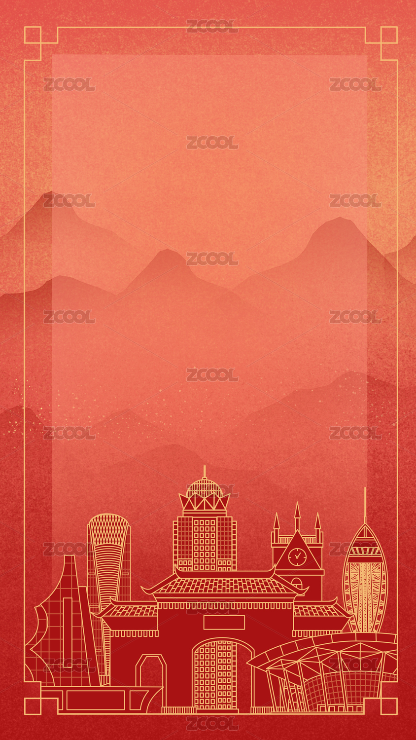 公益,宣传,城市,建筑,红色,国风,中国画,中国文化,古典风格,文化