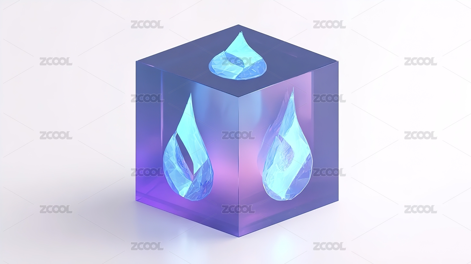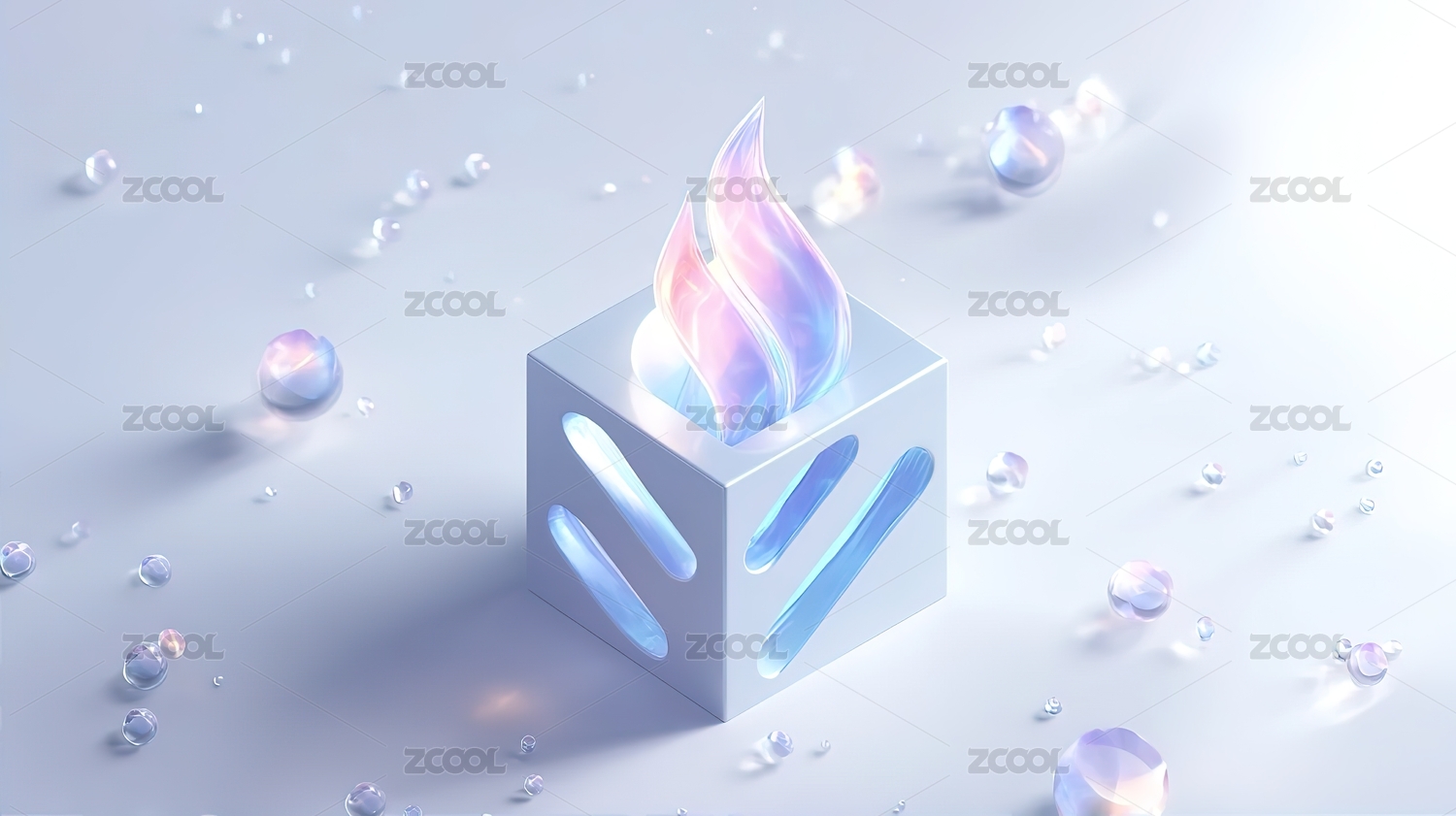宝石,火焰,创意,抽象,立方体,标志,蓝色,冰冷,科技,发光