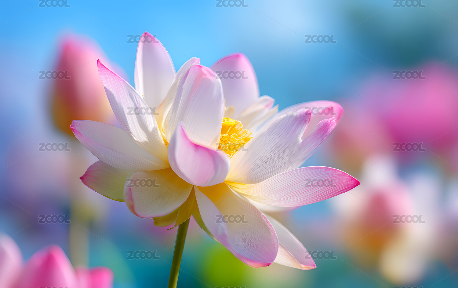 粉色莲花绿黄渐变花瓣层叠