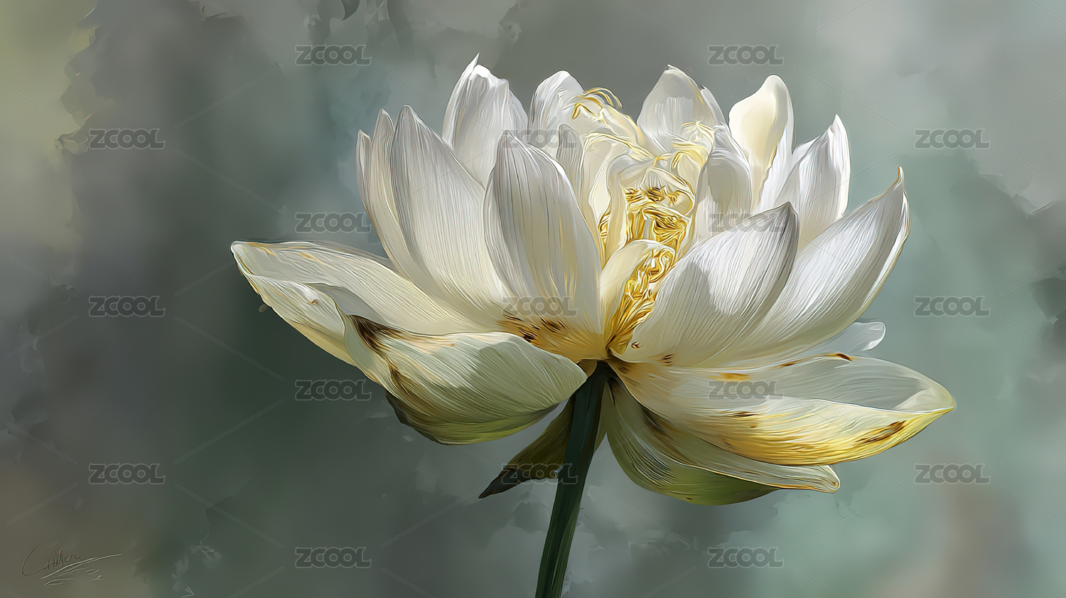 白色莲花黄色花心绿蓝