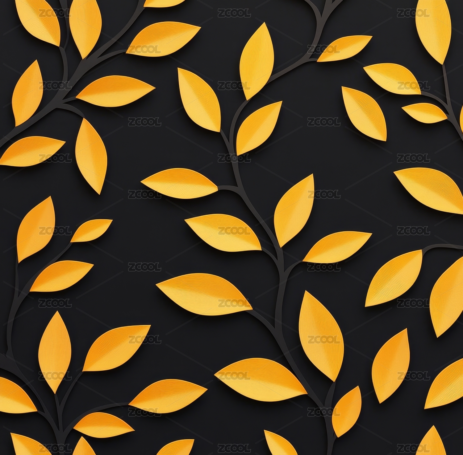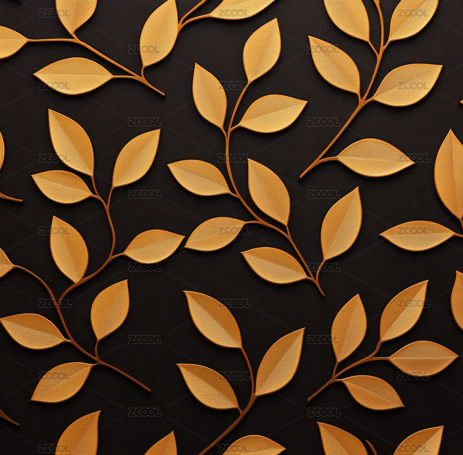 矢量植物底纹背景金边金箔茶树叶绿叶装饰画