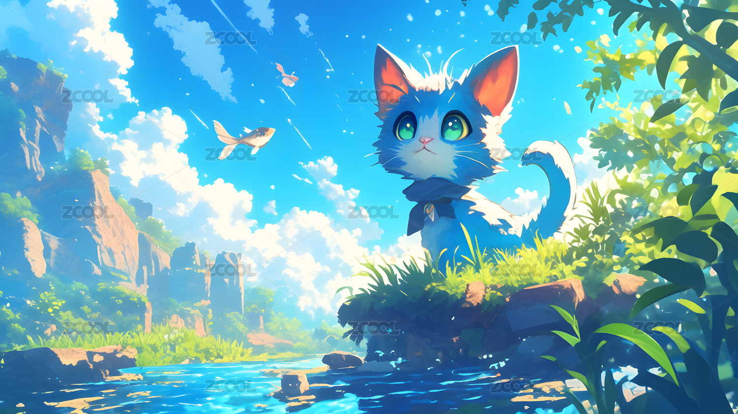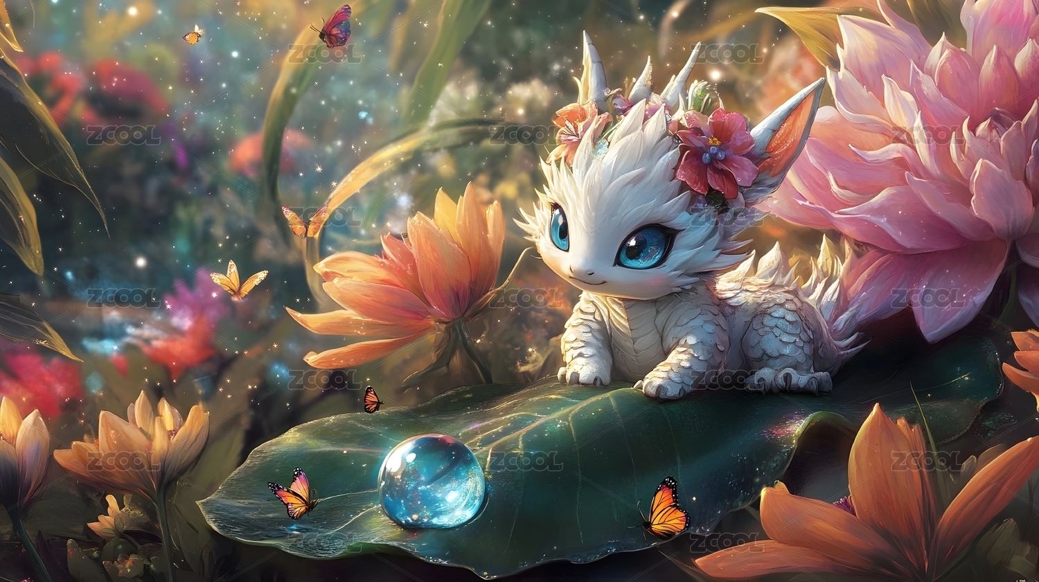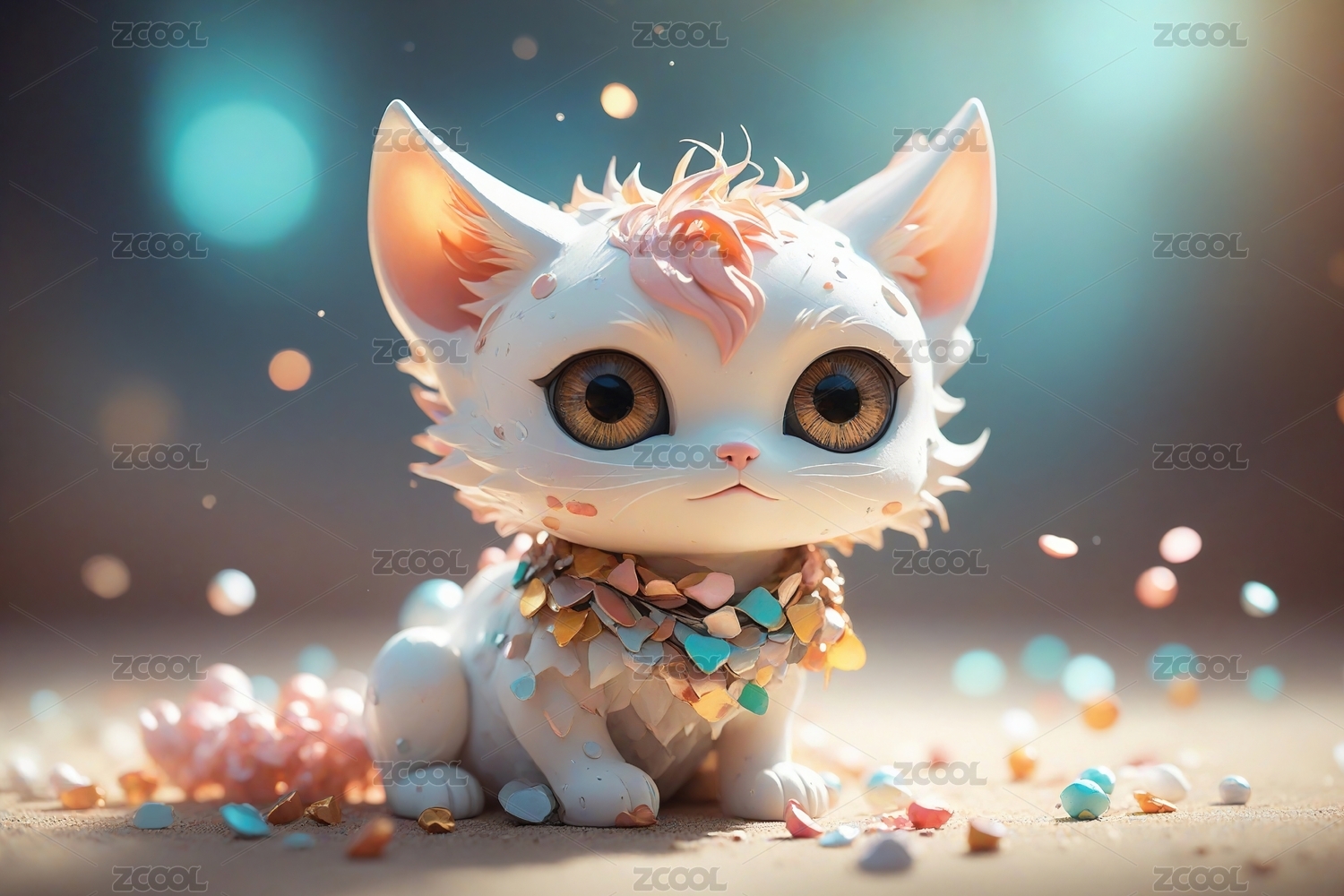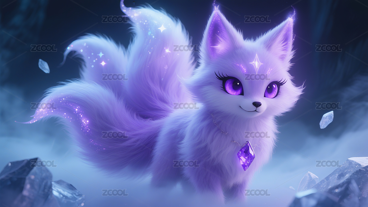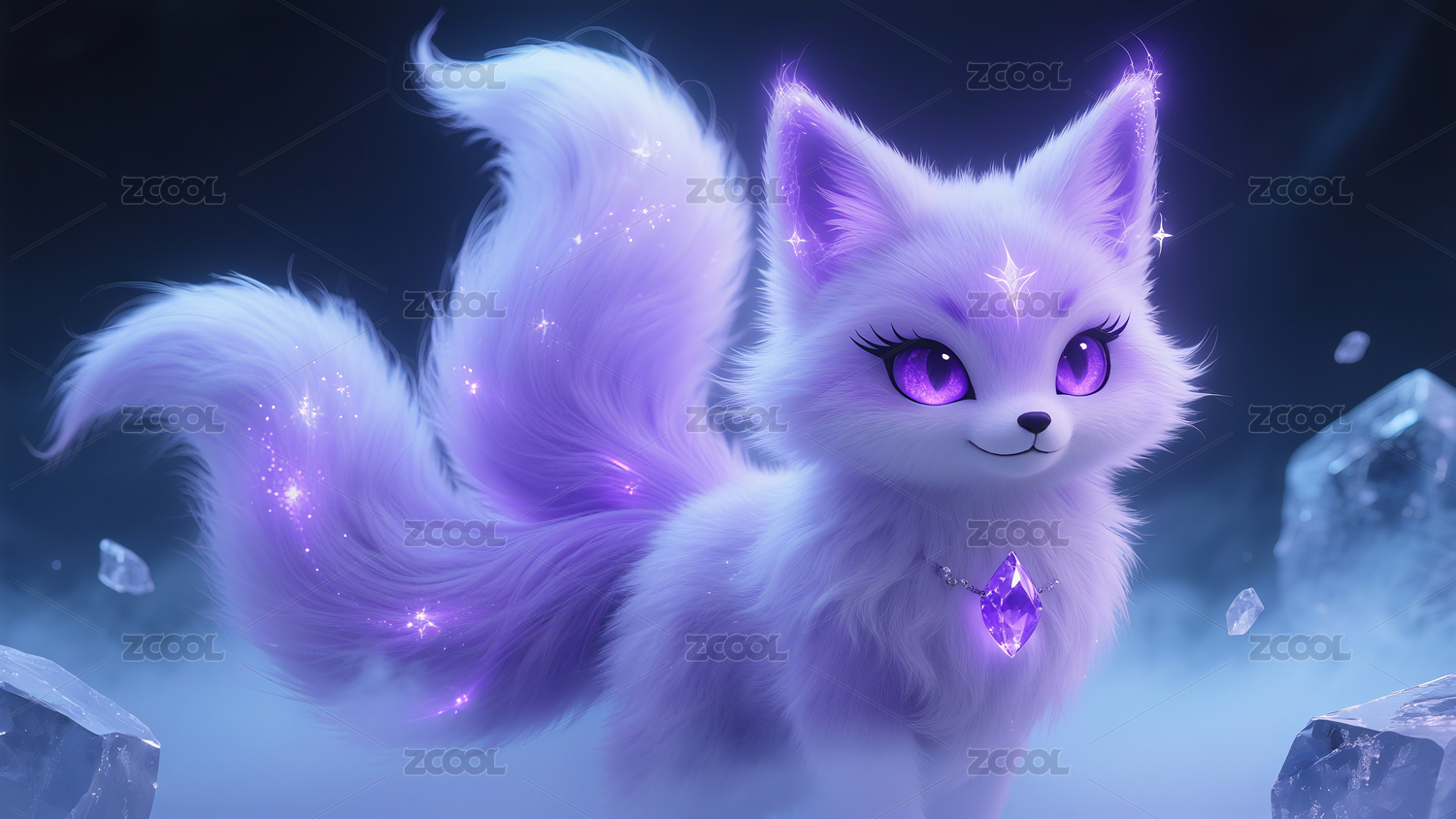 可爱软萌白色拟人小狐狸小狗发光插画展示