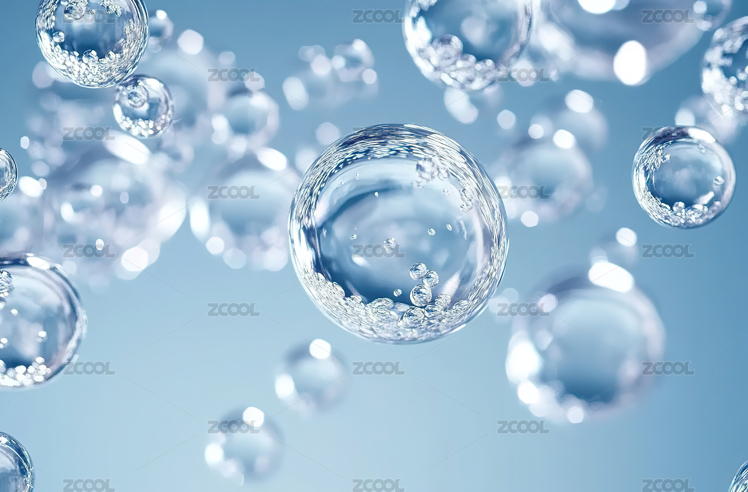蓝色透明气泡泡泡水分子背景