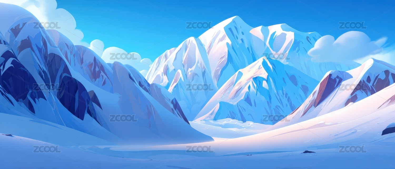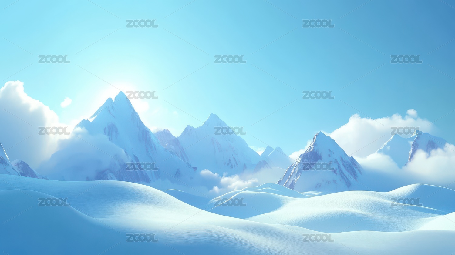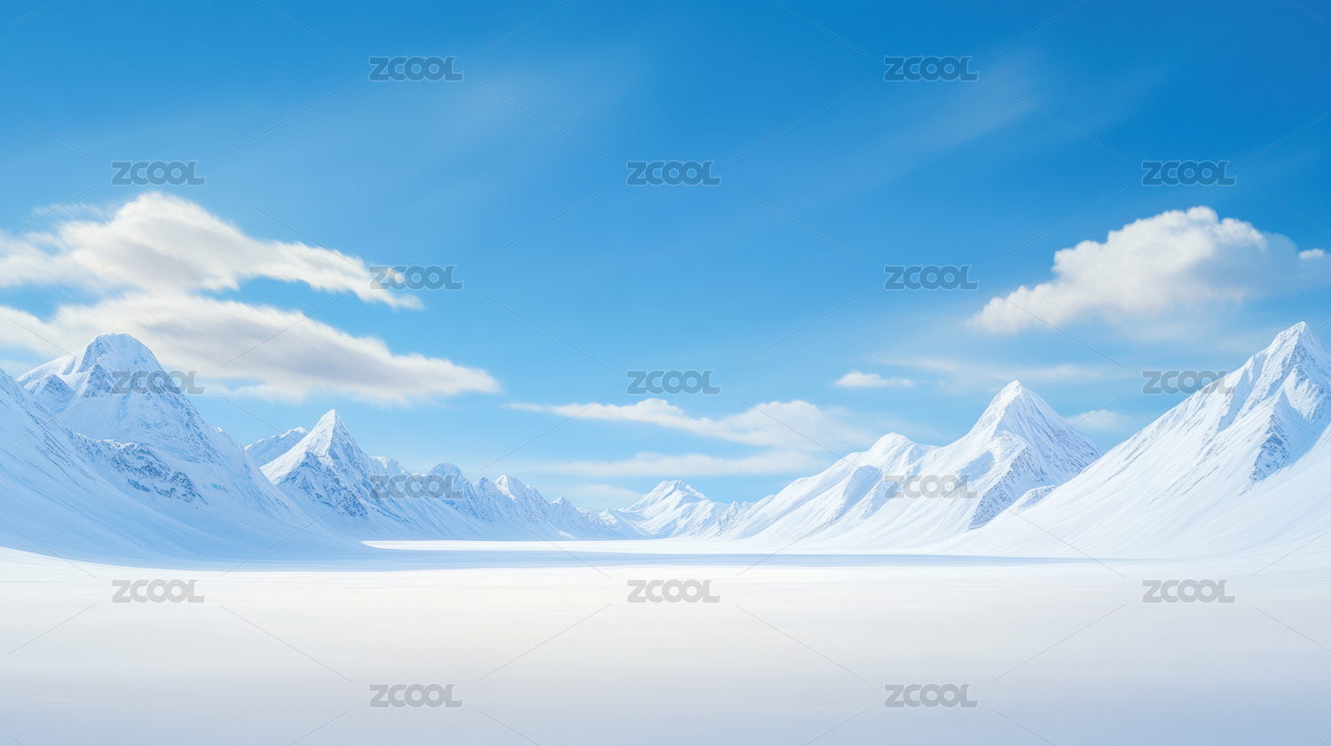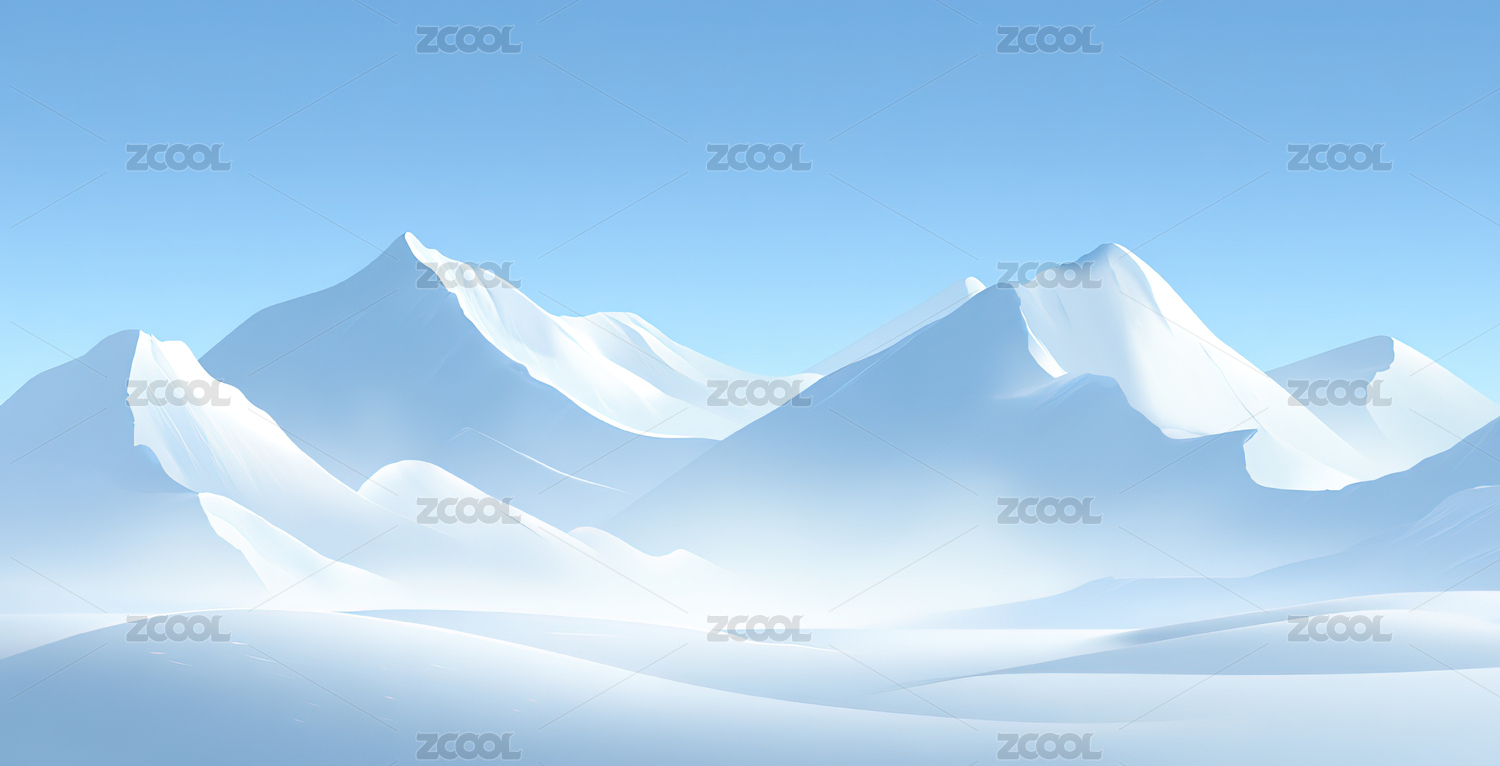白雪皑皑的群山在晴朗的天空中俯瞰