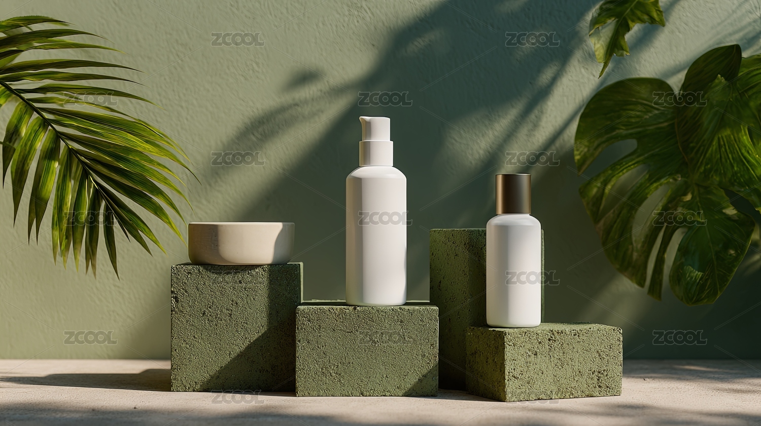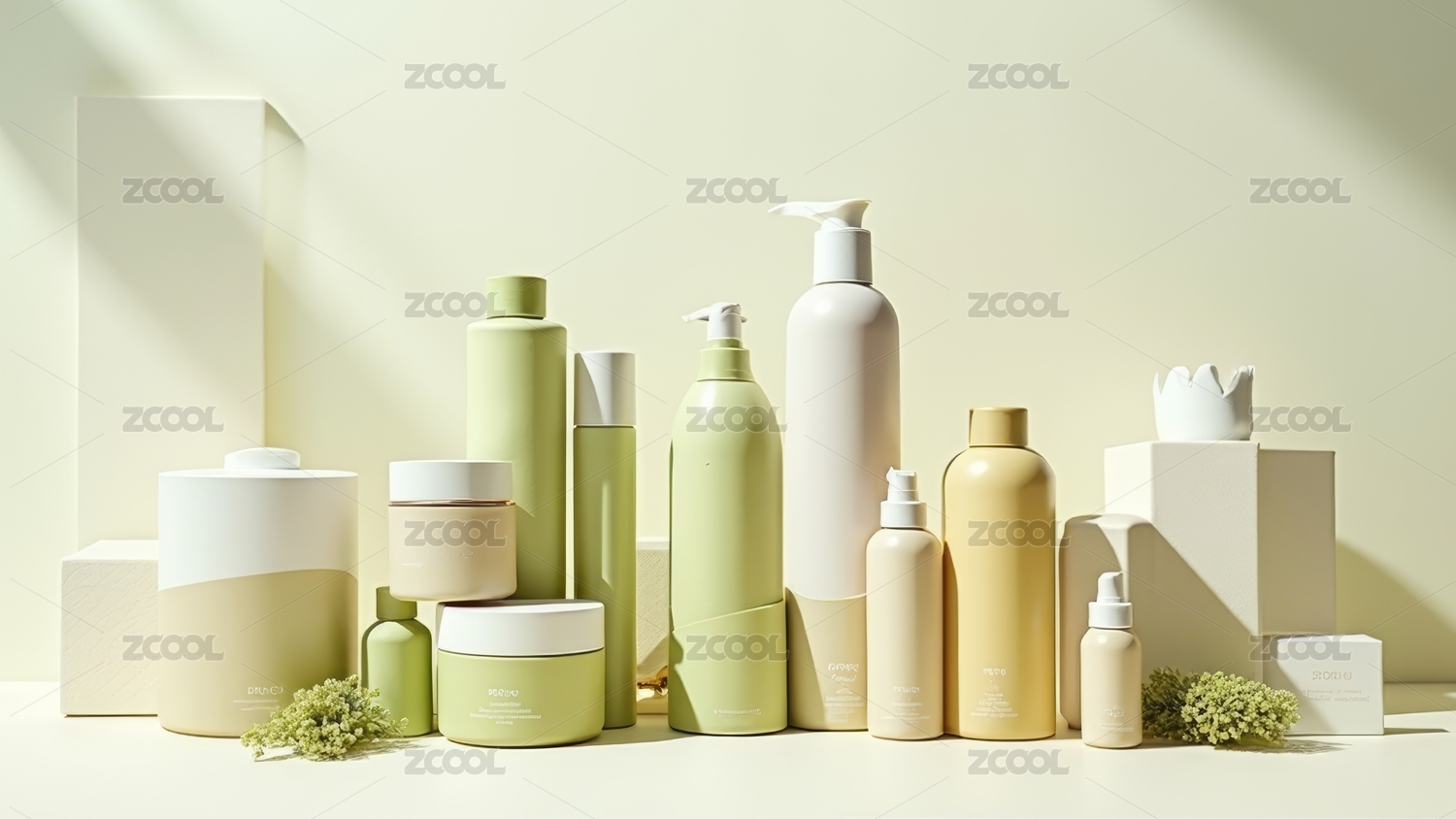 简约风格化妆品陈列于几何底座上