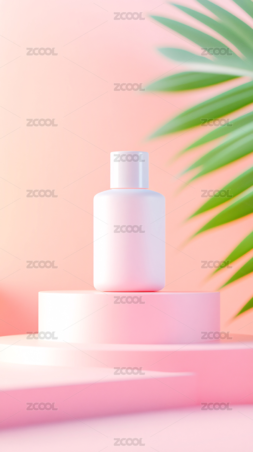 化妆品,护肤品,银色瓶盖,自然元素,绿色植物,自然清新,金色瓶盖,橙色瓶盖,广告展示,高品质
