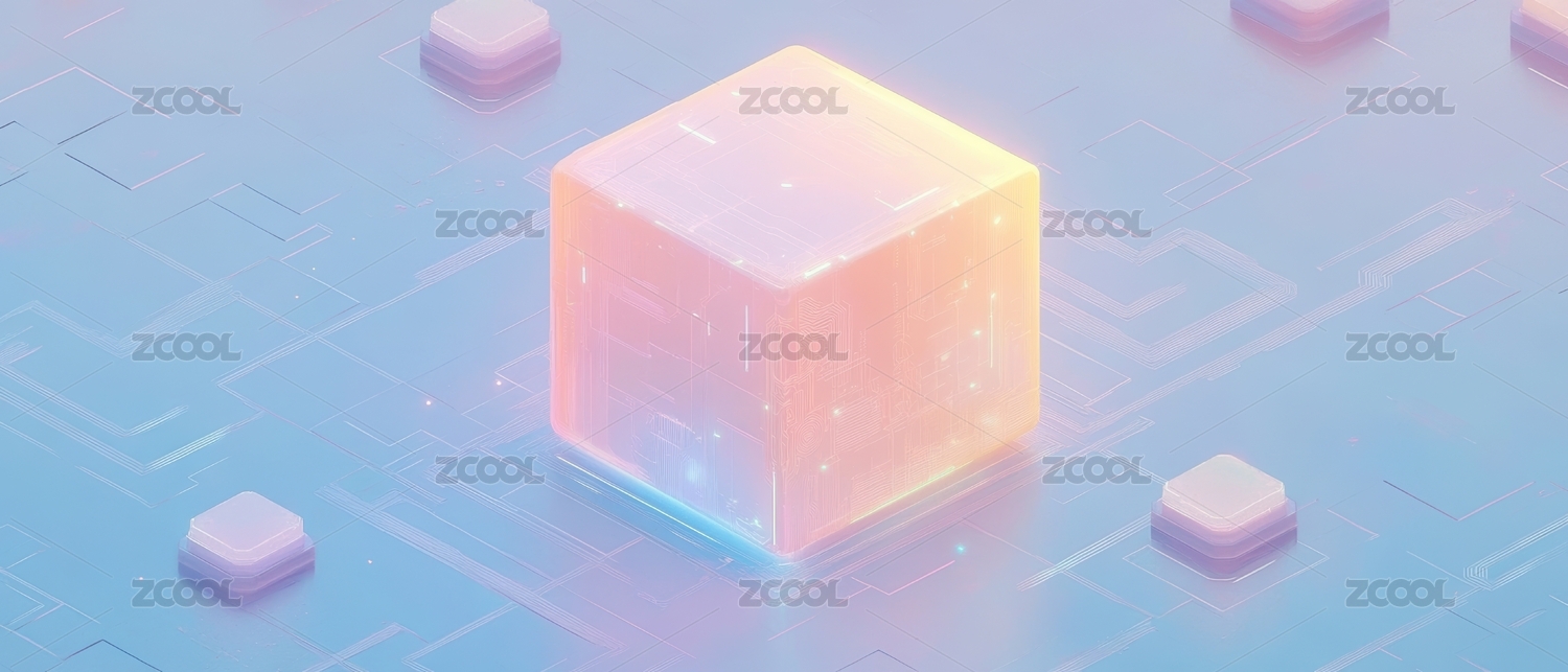 发光方块周围散落小方块抽象风格