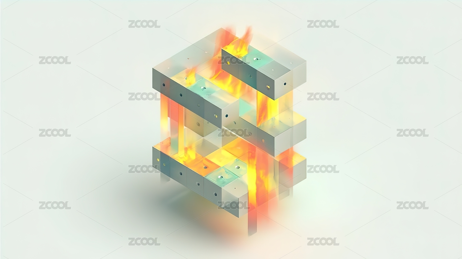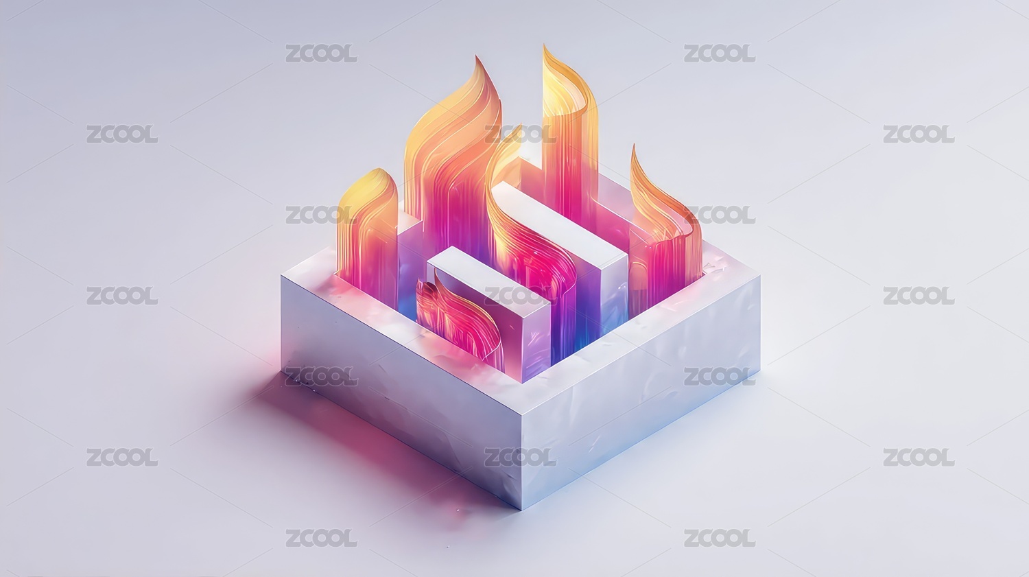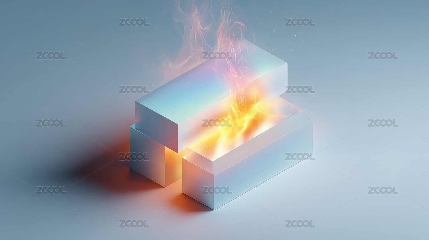 立方体,火焰,光线,抽象,能量,渲染,发光,现代,几何,设计