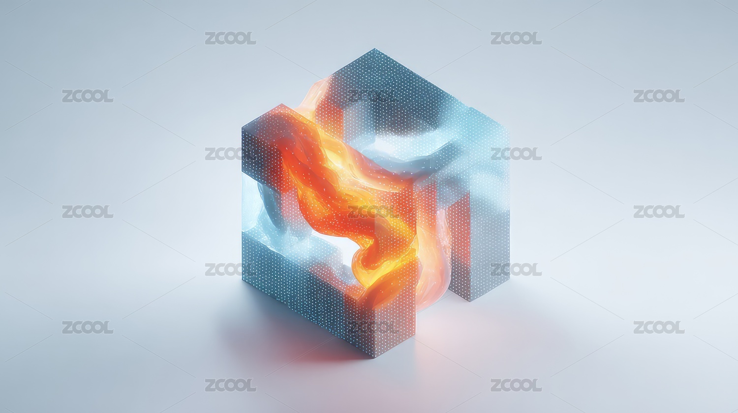 立方体内的火焰和蓝色气流抽象艺术