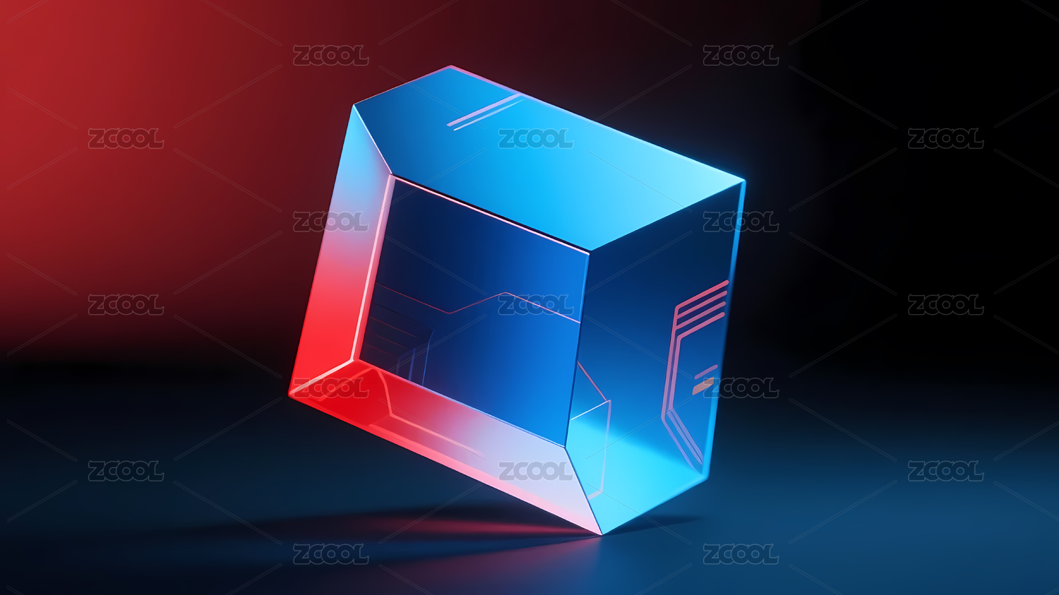 蓝色红色渐变立方体