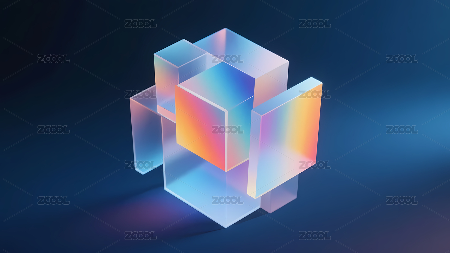 艺术,简约,抽象,立方体,几何,渐变,梦幻,炫彩,透明,堆叠