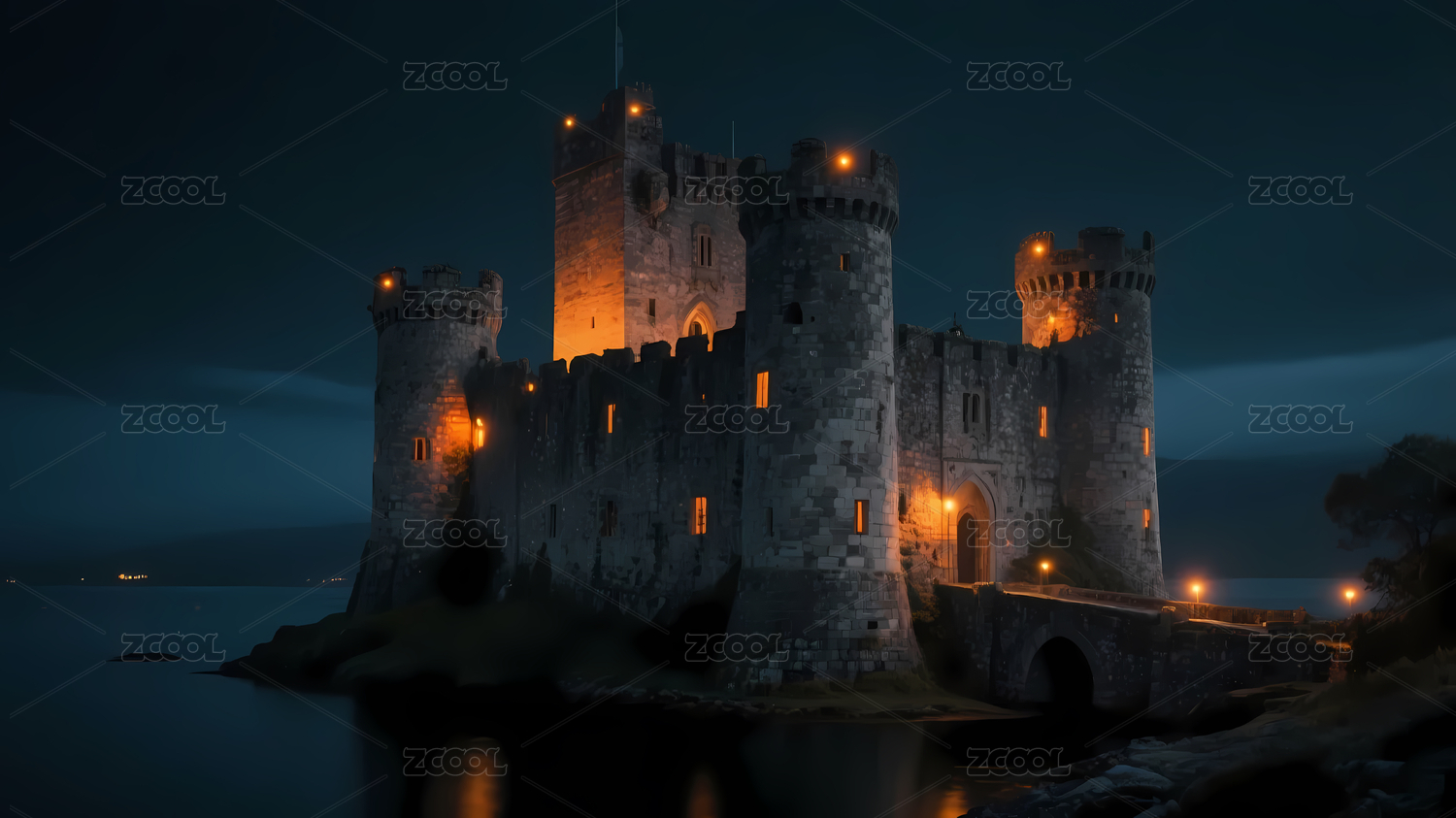 夜晚的古老城堡