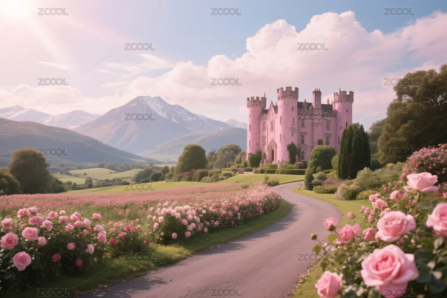 粉色城堡风景插画