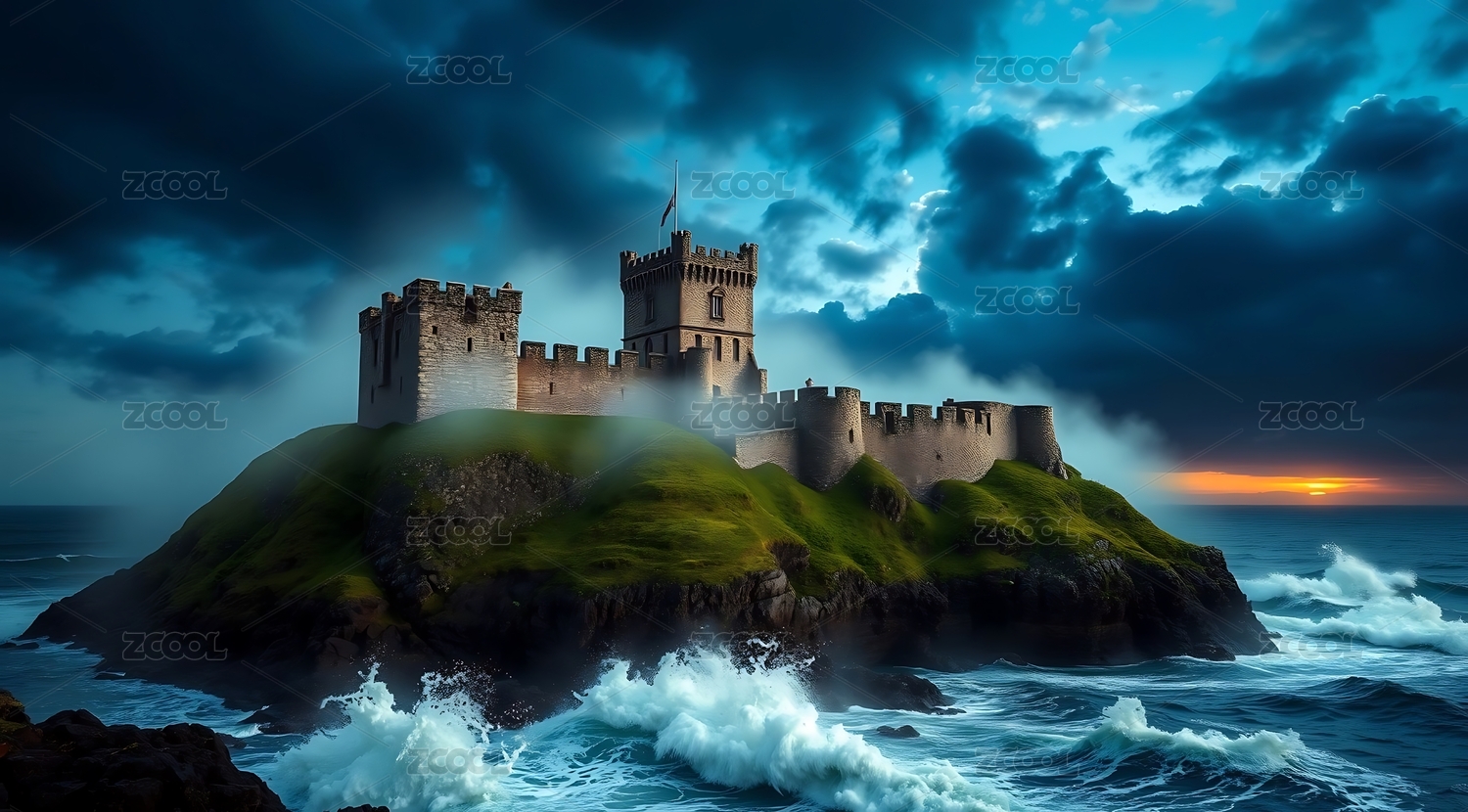 海天一色下的孤岛城堡