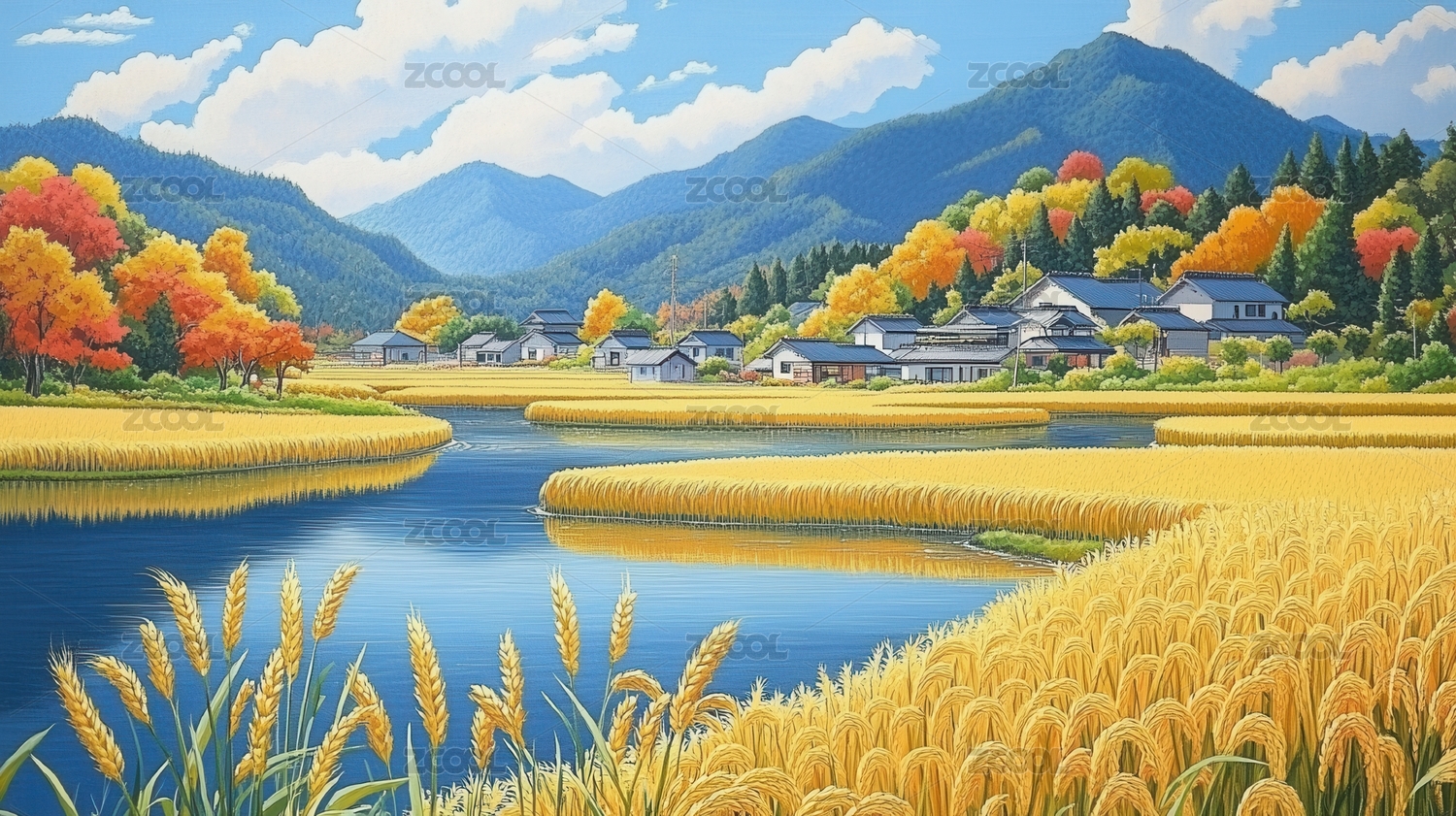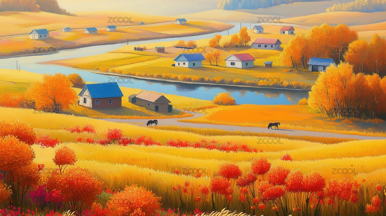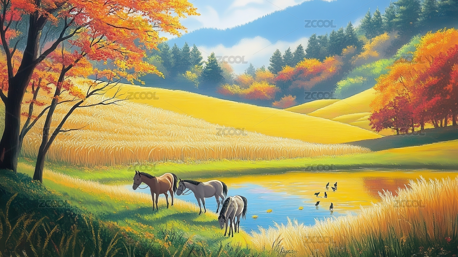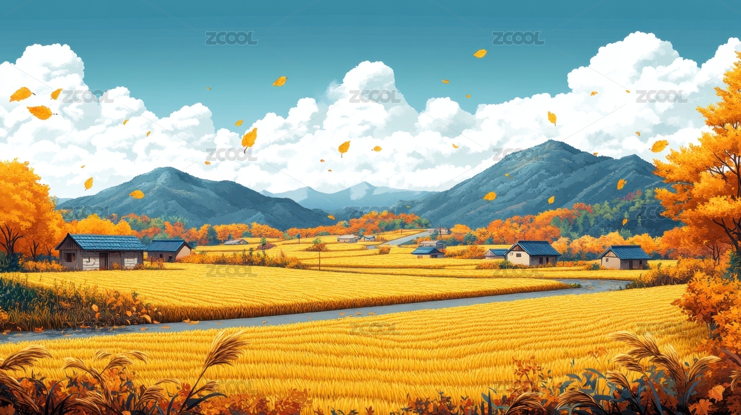 秋天秋季立秋秋分自然户外风景卡通漫画插画