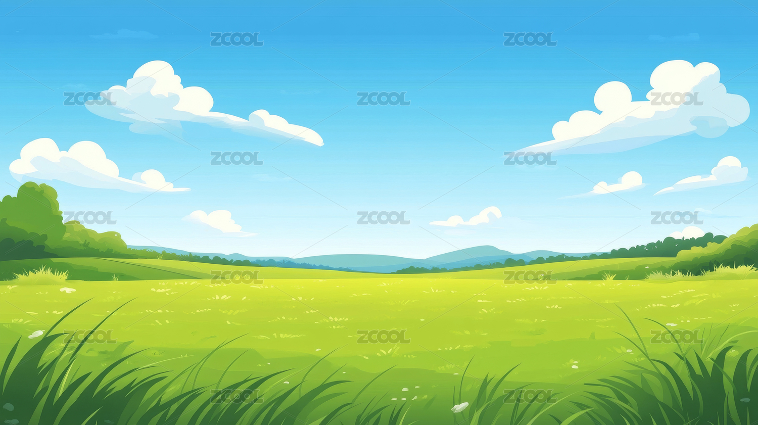 自然户外绿色乡村田野插画背景壁纸