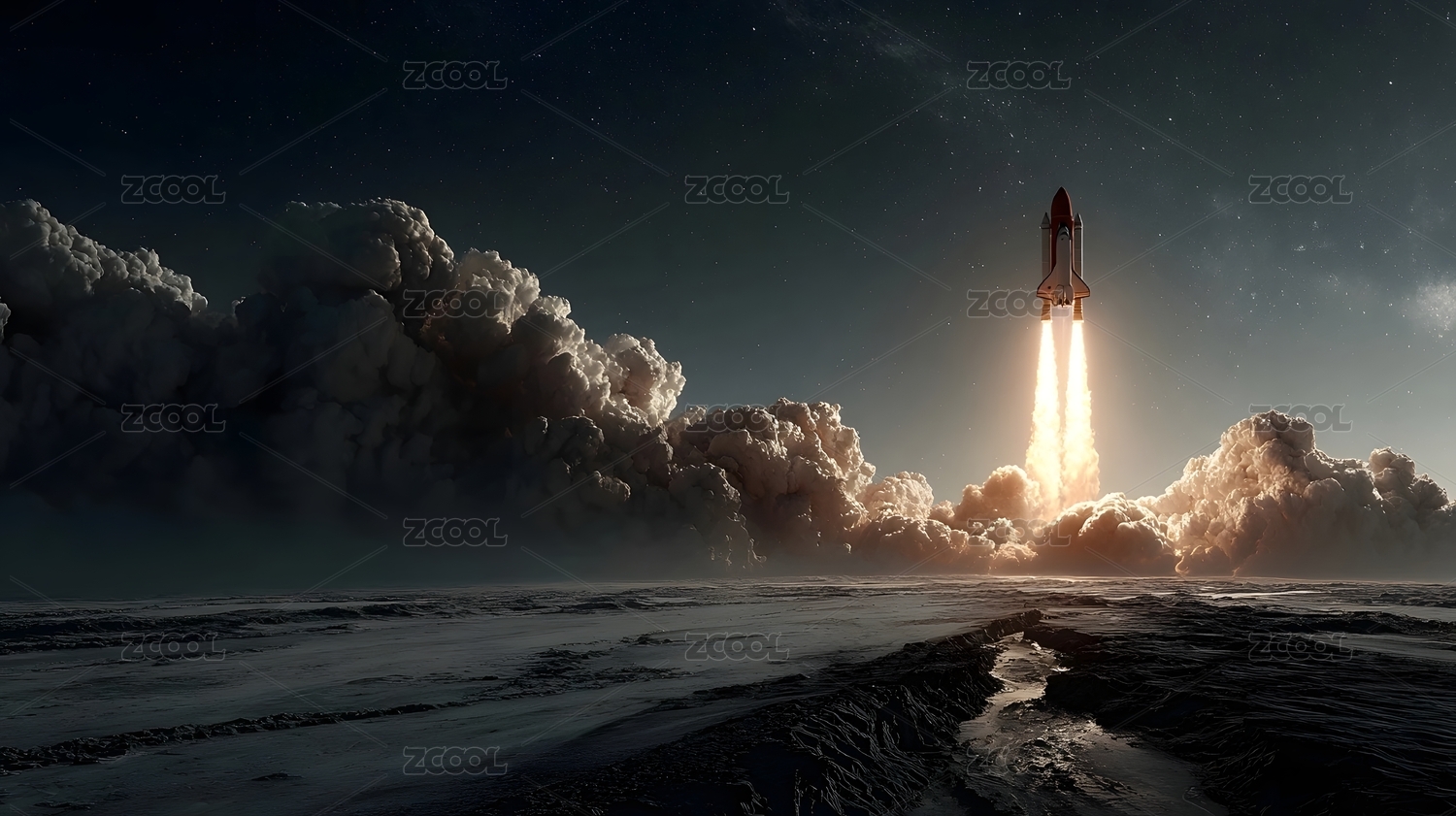 背景,科技,水面,天空,波浪,海洋,探索,云朵,光束,火箭