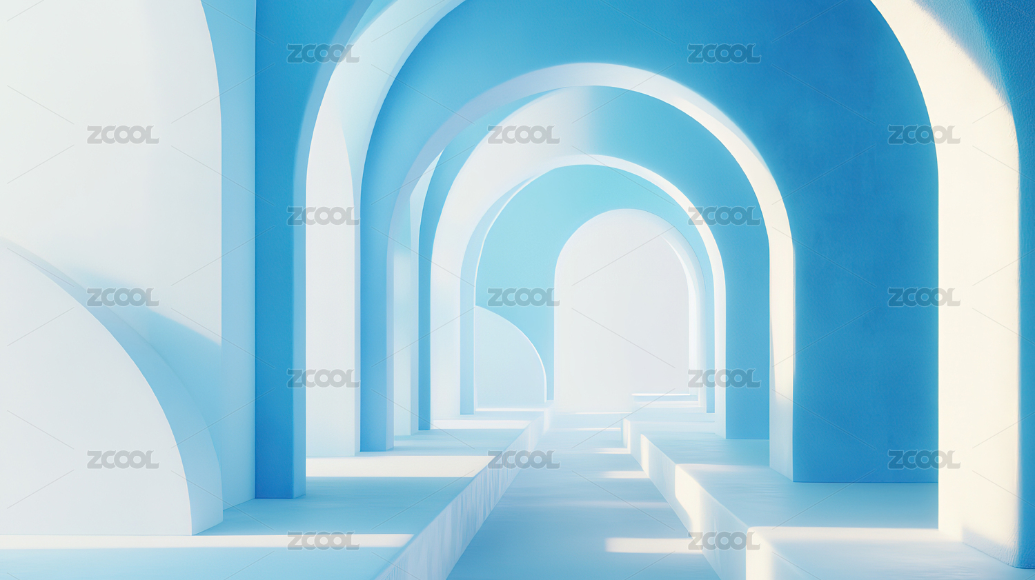 结构,设计,光线,阳光,阴影,蓝色,背景,圆形,台阶,空间