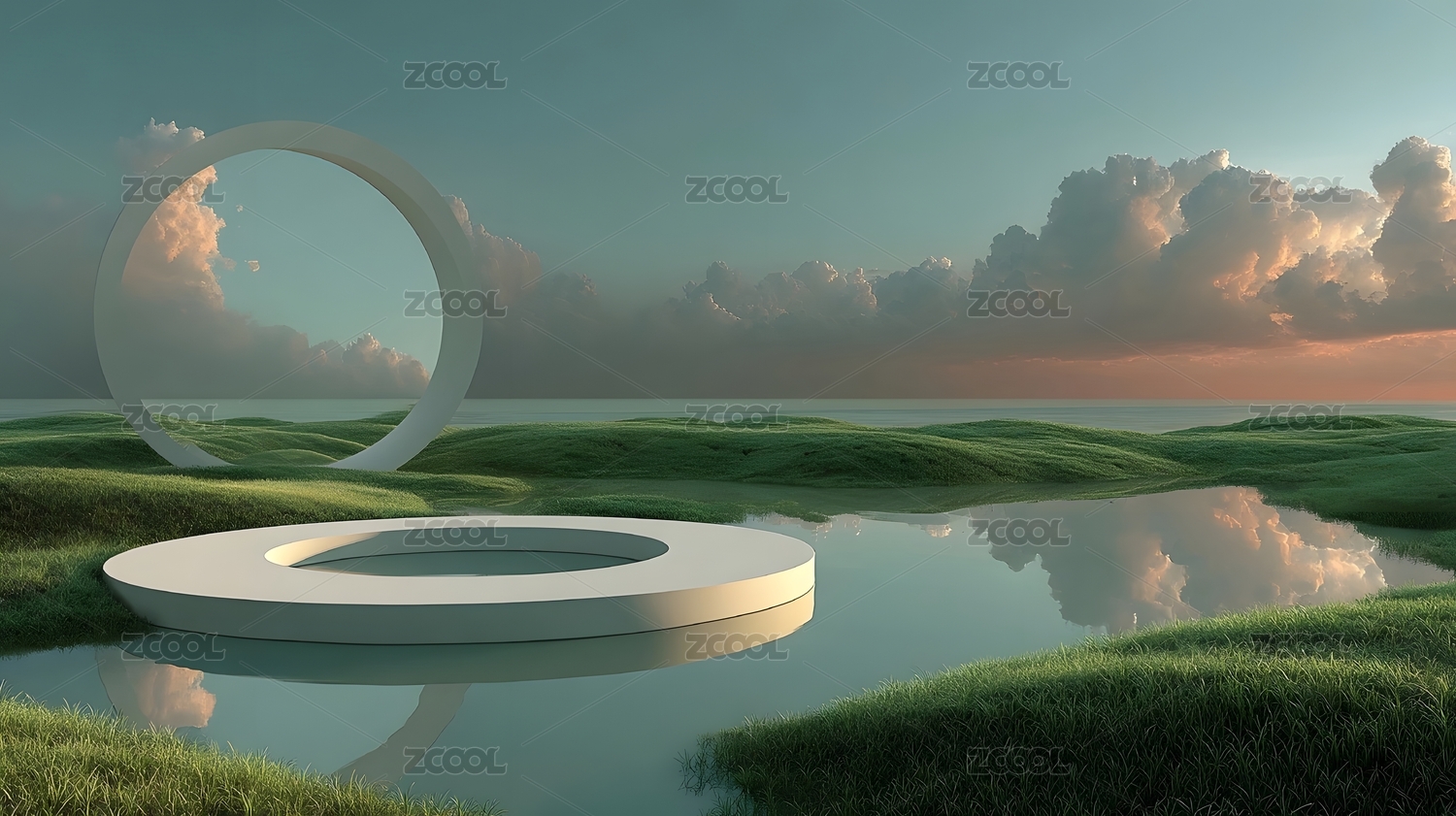 蓝色,反射,天空,建筑,山脉,水面,远山,水域,阳光,圆形