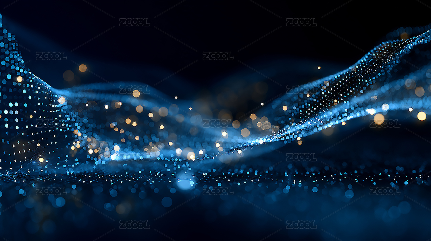 深蓝色科技数据光点汇聚波浪背景