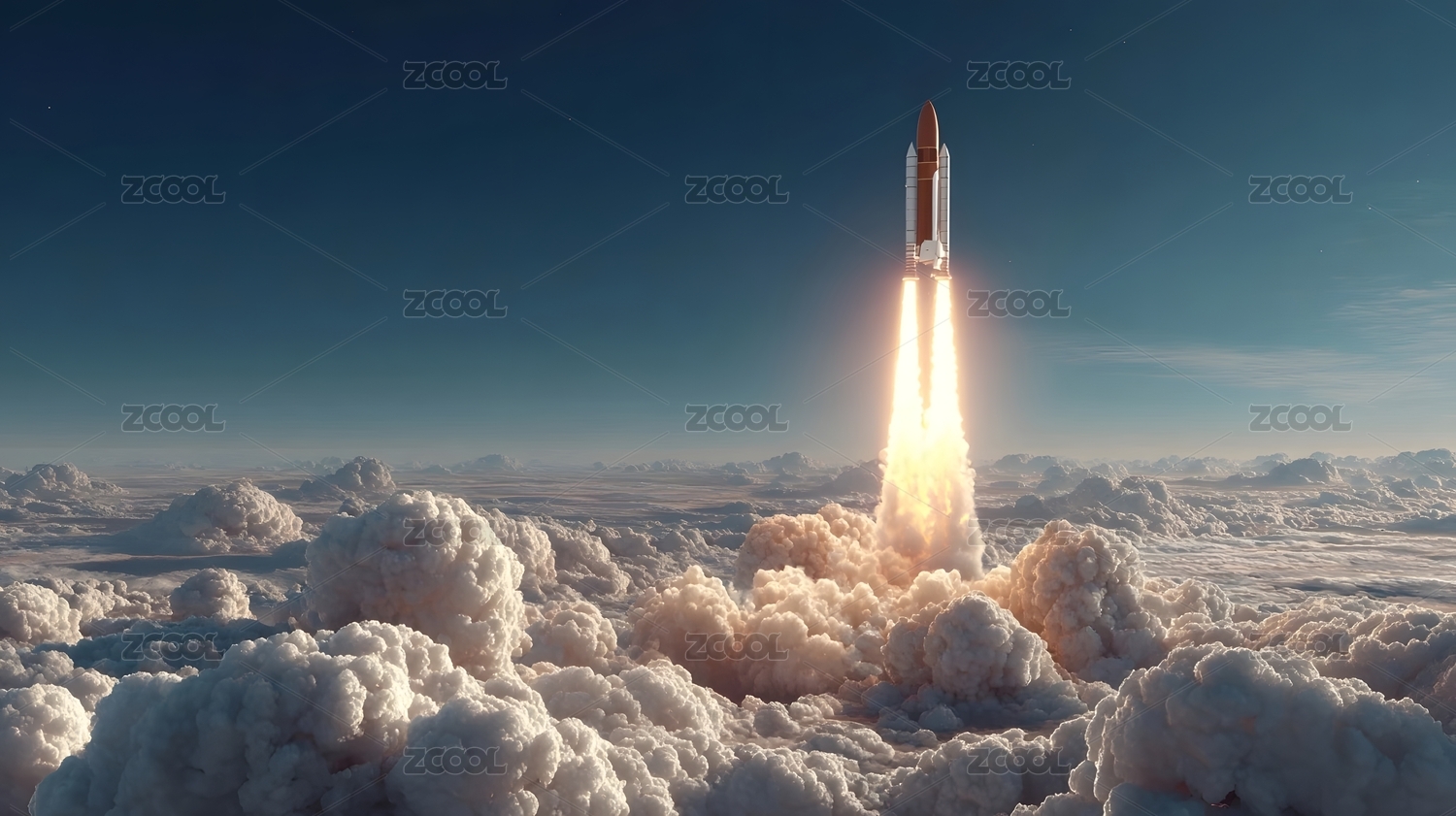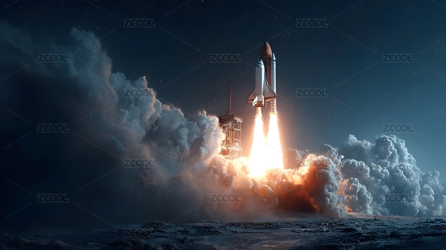 火箭,发射,烟雾,火焰,升空,星空,夜空,推进,地面,云层