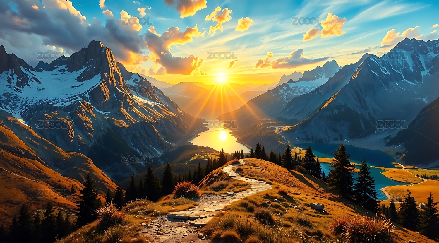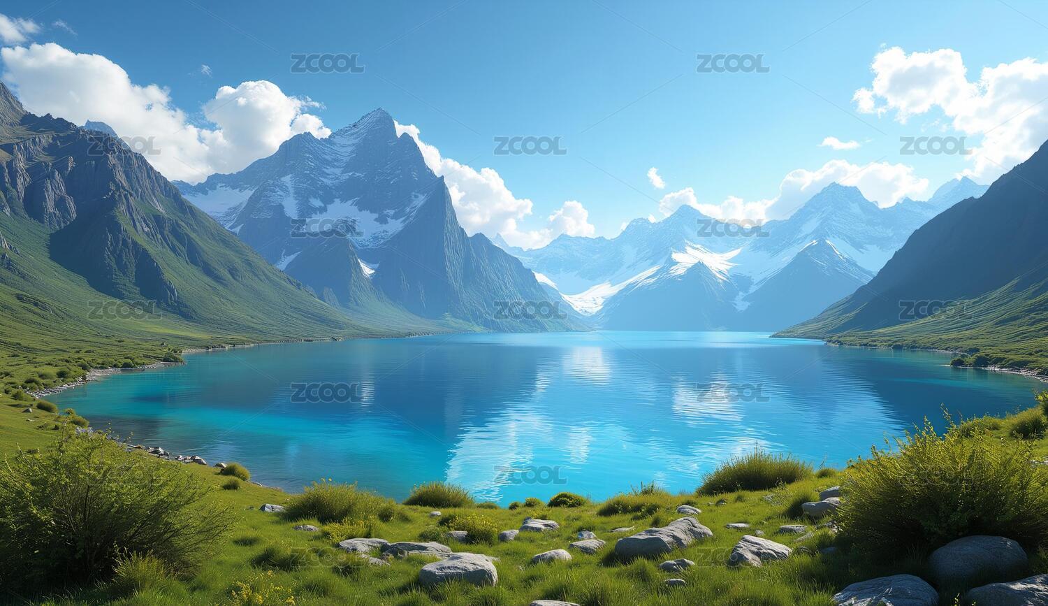 雪山, 蓝天, 阳光, 草原, 鲜花