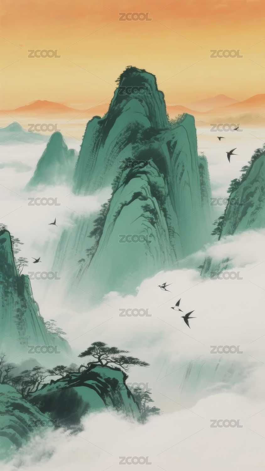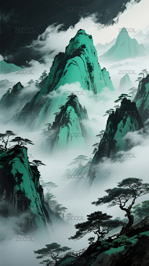 险峰,山水,水墨,高耸,巨峰,山河,山林,浓墨重彩,山雾