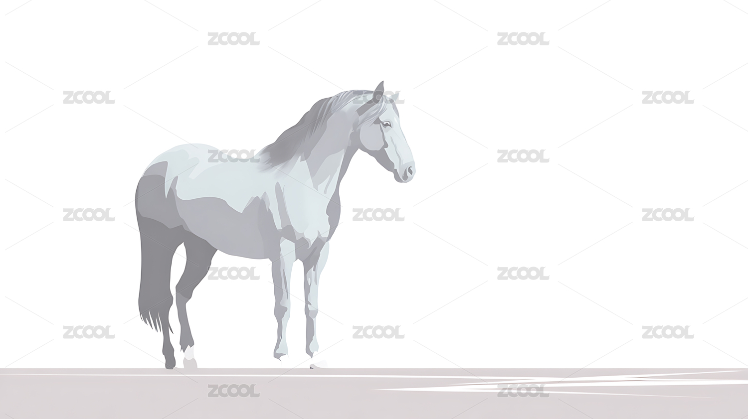 简单晴朗明亮一匹站立的棕色马插画绘画