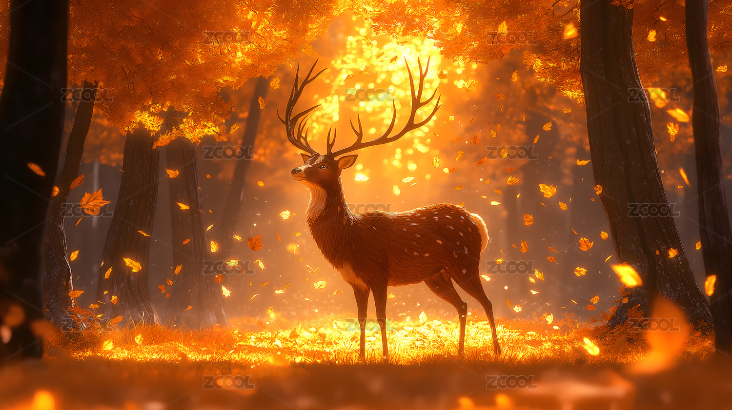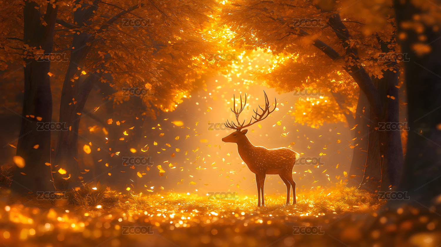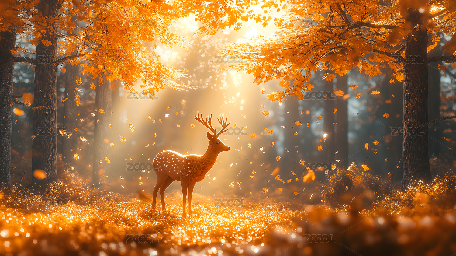秋日森林中的鹿主题
