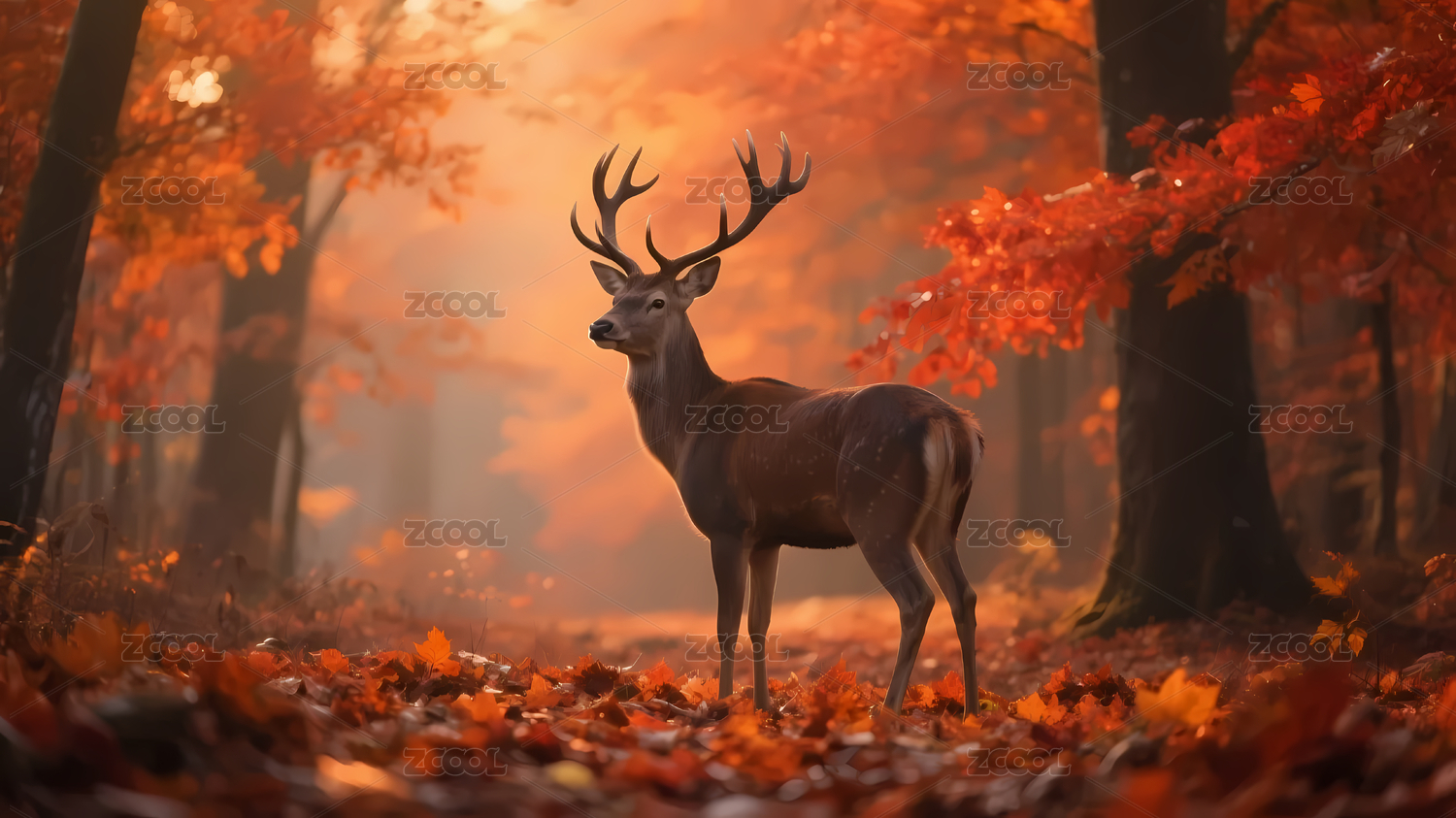 秋日森林中的雄鹿