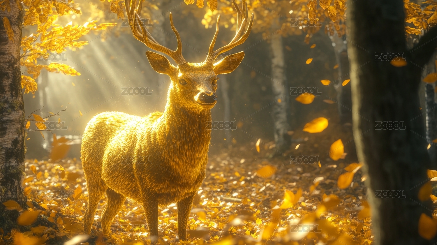 金色鹿在秋日森林中