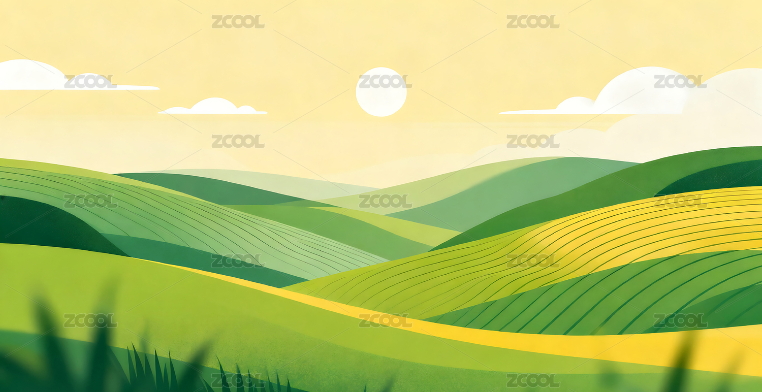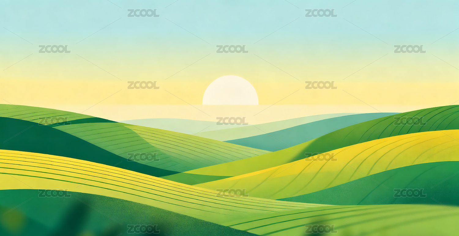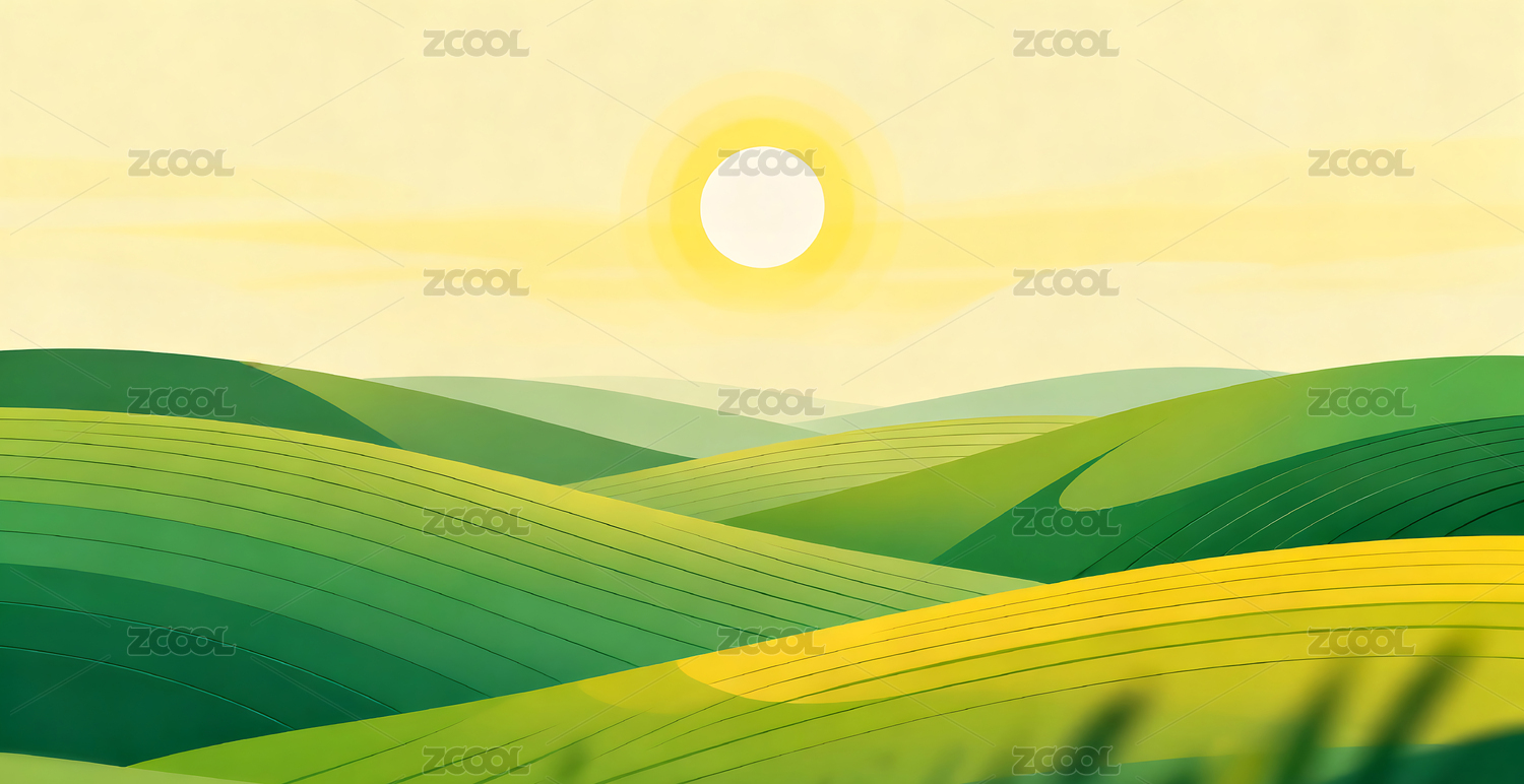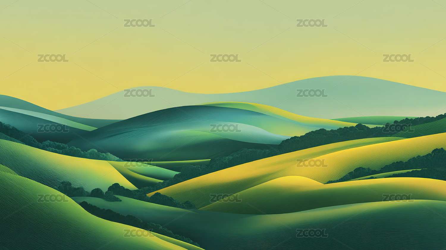 渐变,自然,明亮,天空,山丘,树木,绿色,黄色,层次,简洁