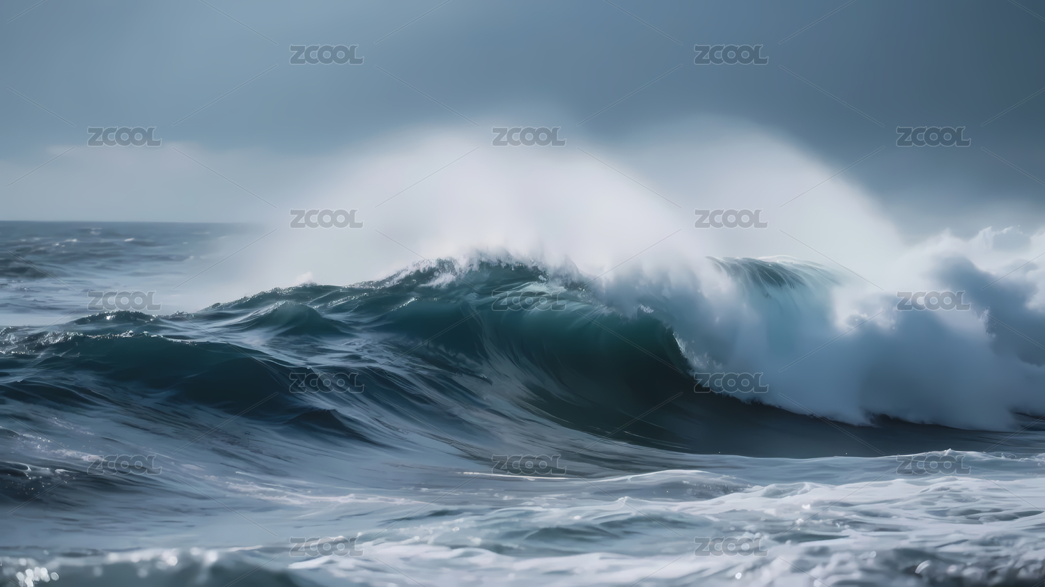 汹涌海浪的深蓝力量