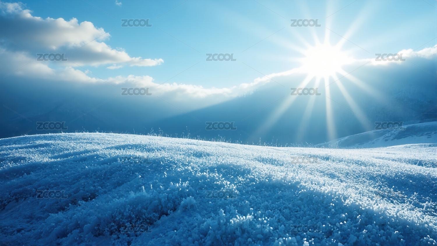 雪地,山丘,阳光,云层,蓝天,冬季,寒冷,宁静,自然,风景