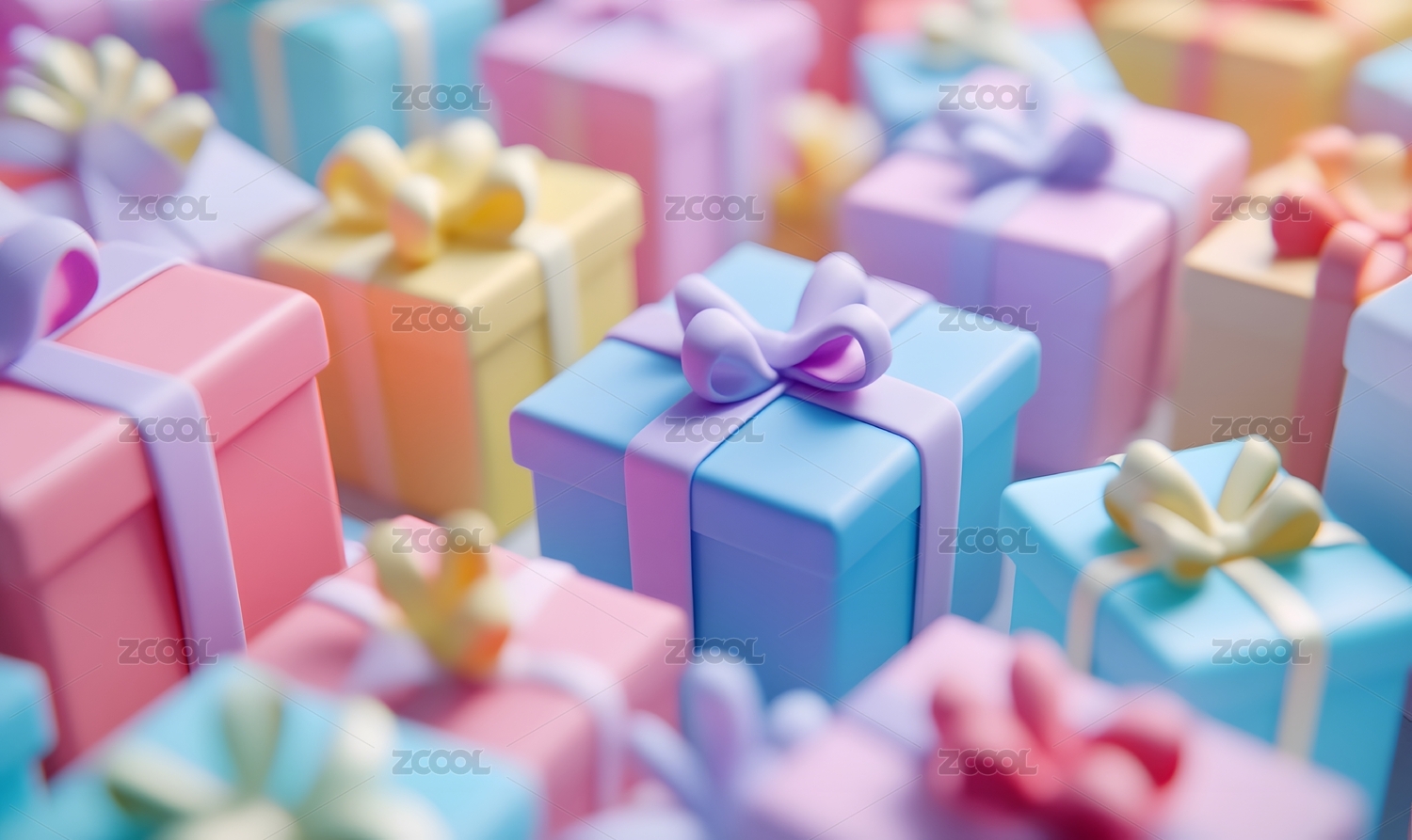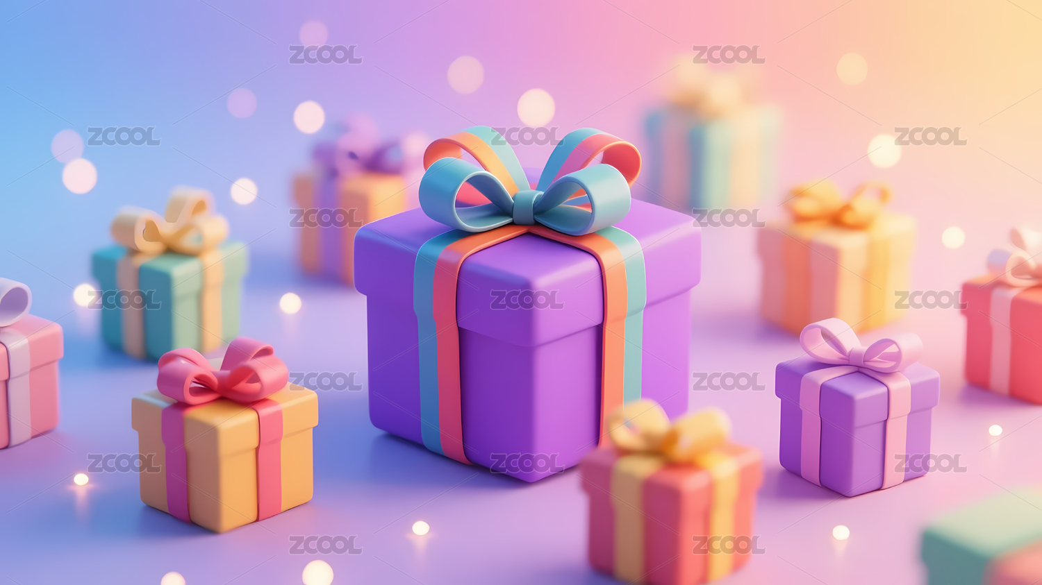 蓝色,粉色,绿色,黄色,蝴蝶结,喜庆,温馨,盒子,礼物,灯光