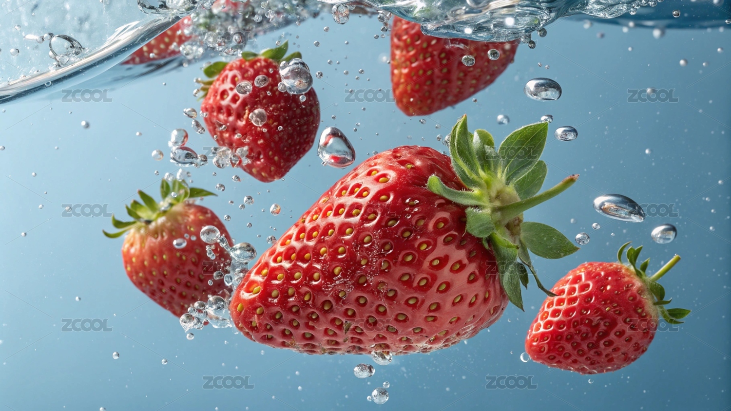 草莓,水下,水果,水珠,生鲜,绿色,红色,水花,自然,清新