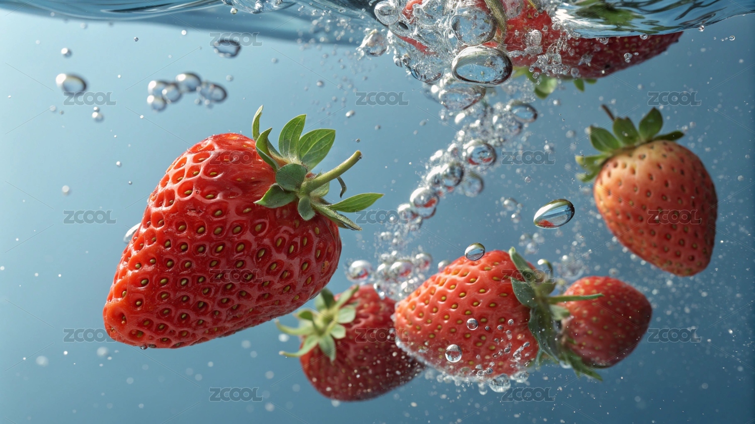 草莓,水下,水果,水珠,生鲜,绿色,红色,水花,自然,清新