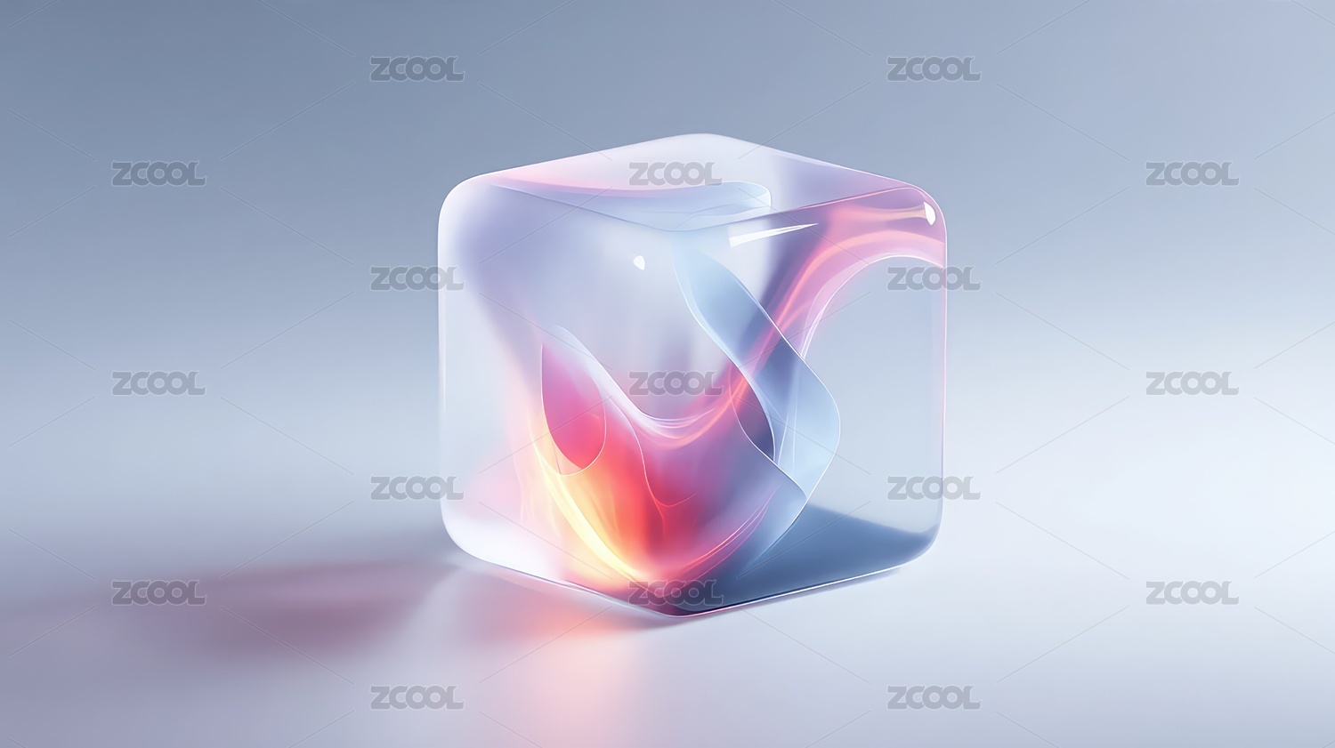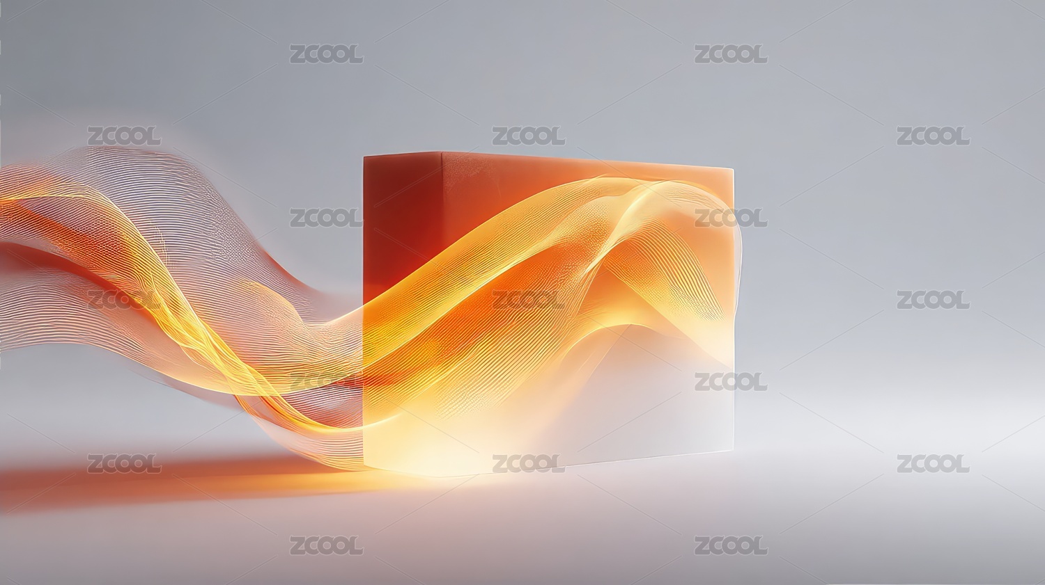 透明立方体与彩色波纹
