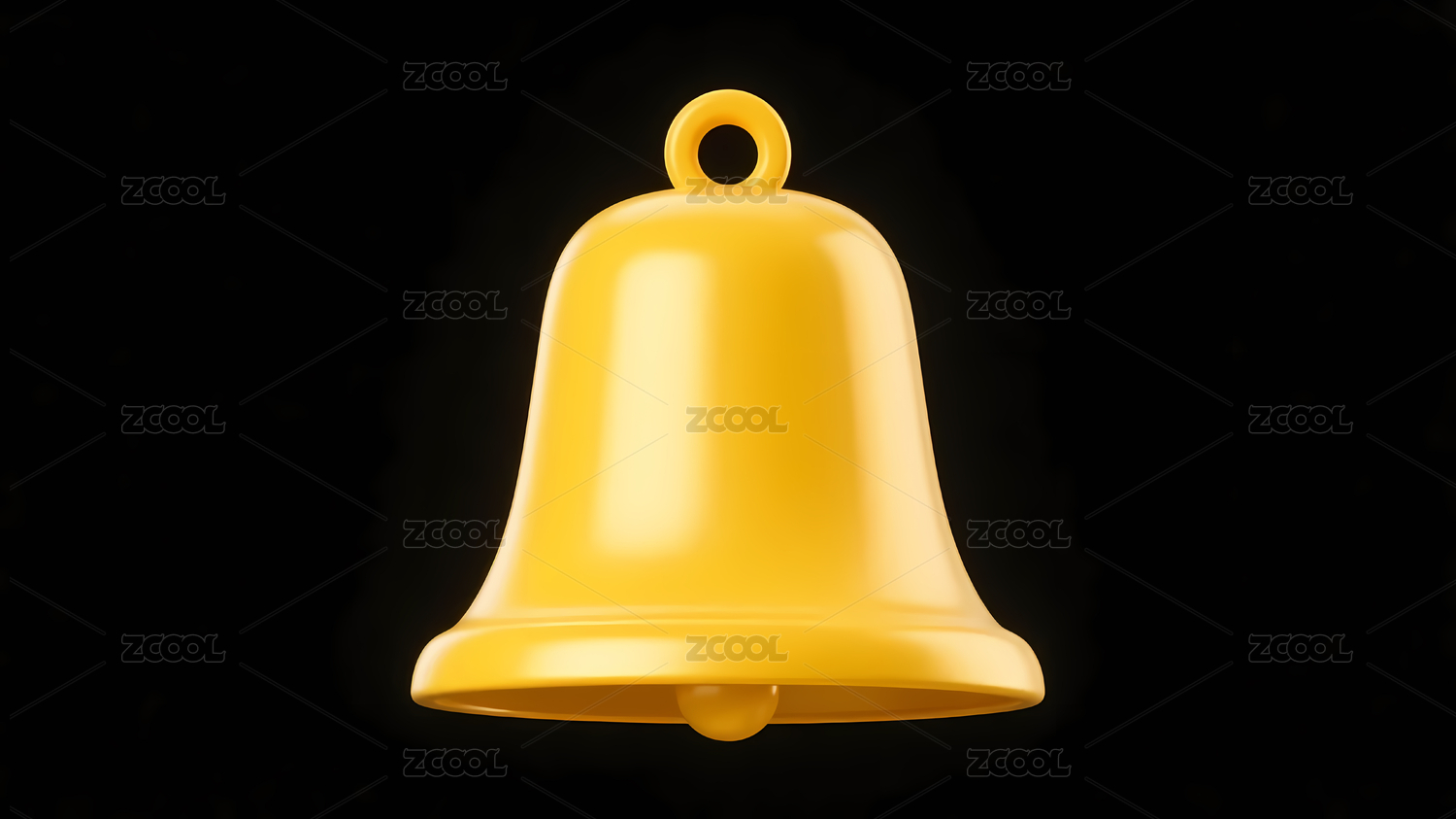 黄色铃铛黑色背景有红色手柄反光高清图片