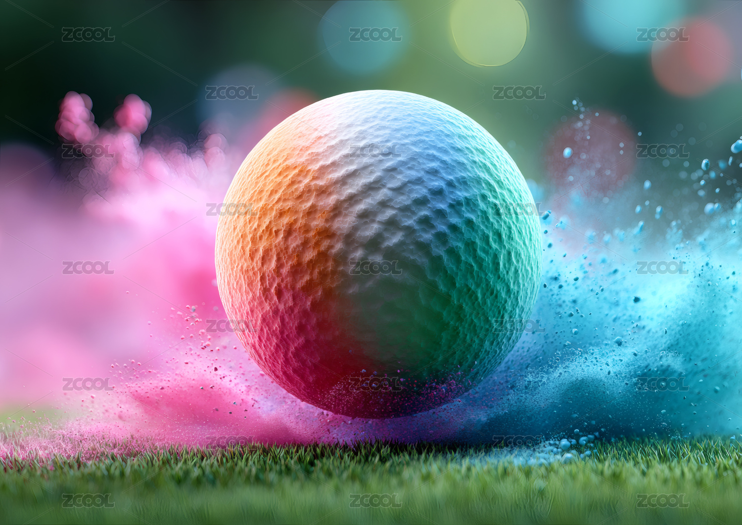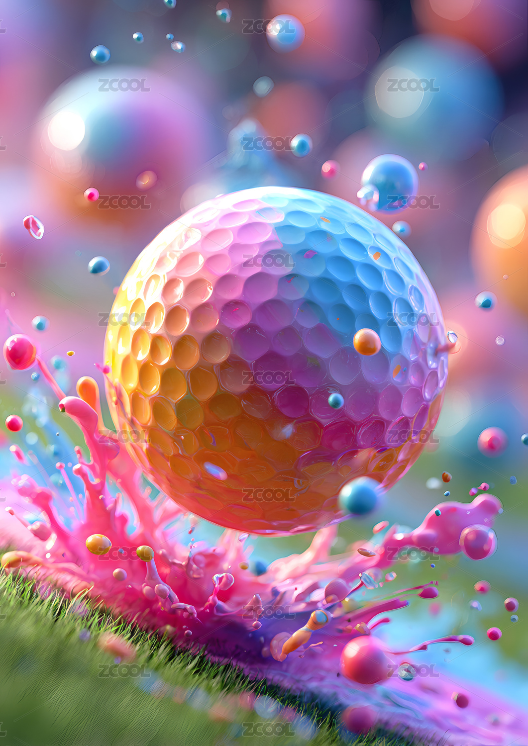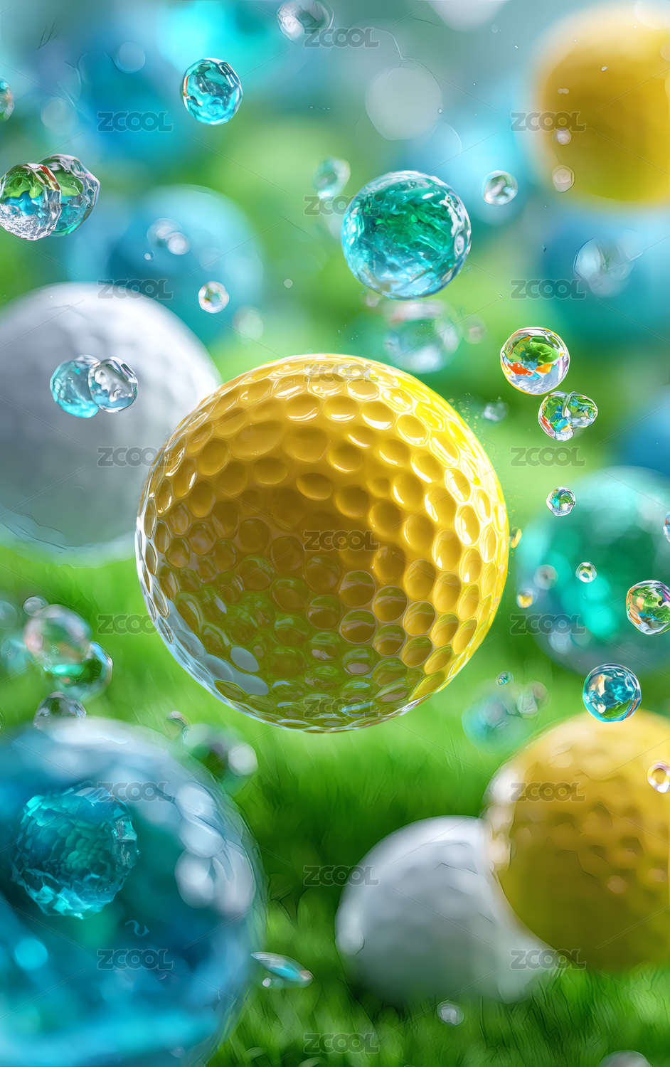 飞溅的彩色高尔夫球