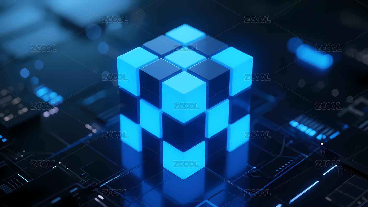 立方体,科技,光线,抽象,设计,动态,流动,标识,蓝色,未来感