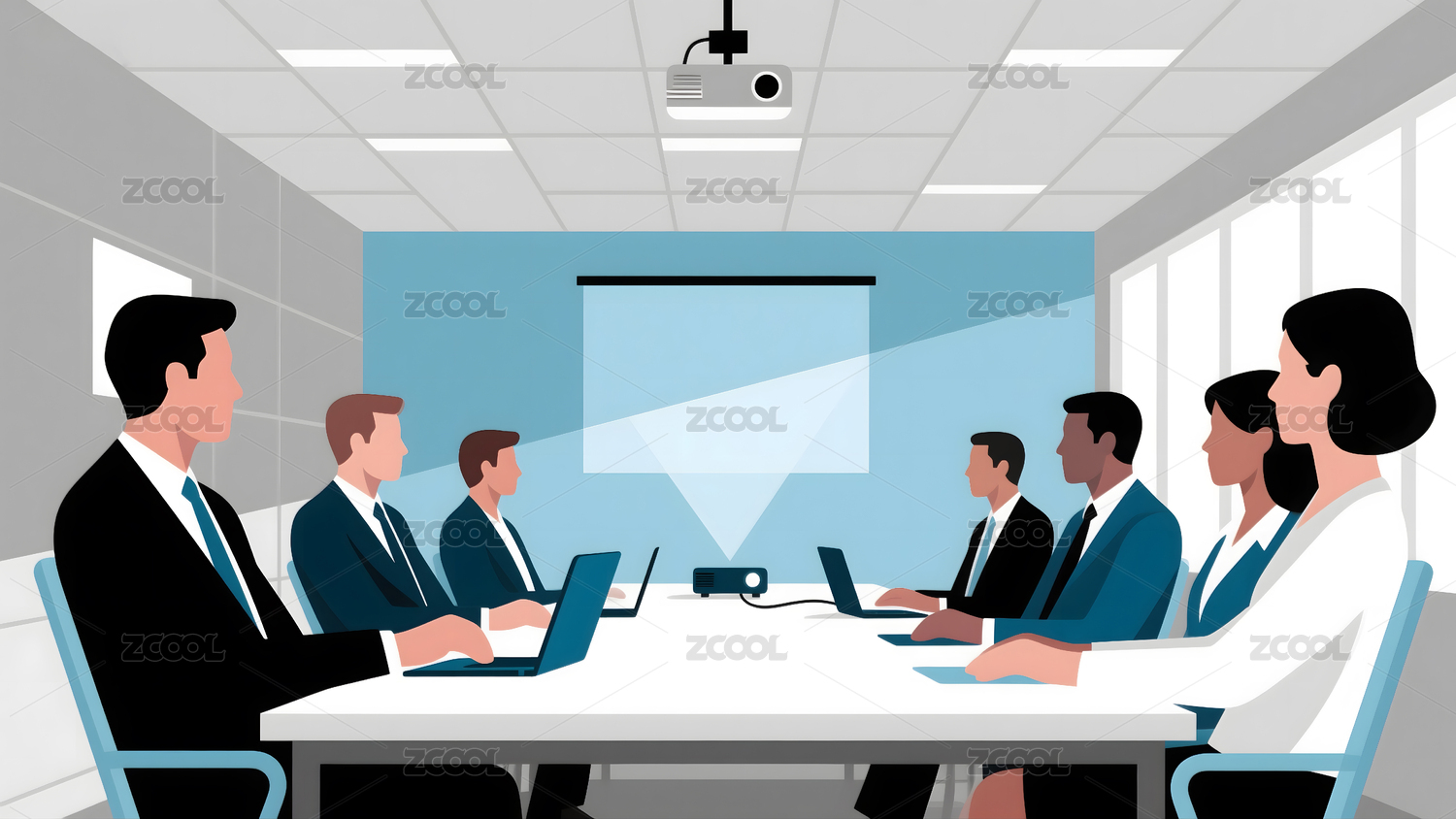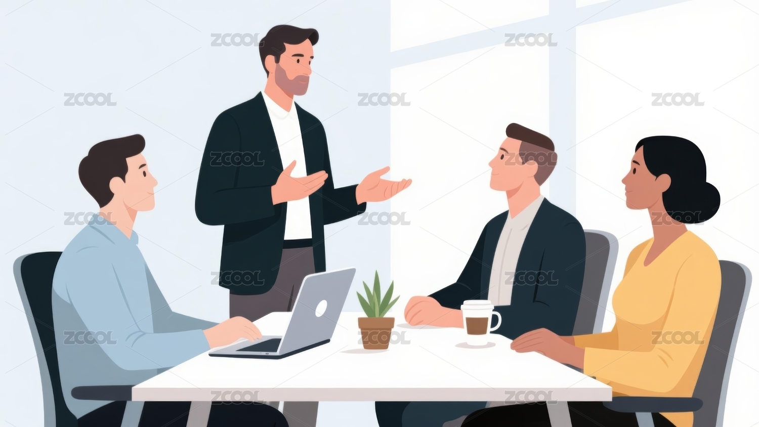 扁平,上班族,销售,开会,会议,工作,上班,场景,插画